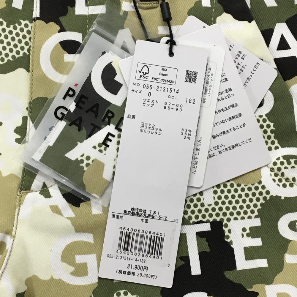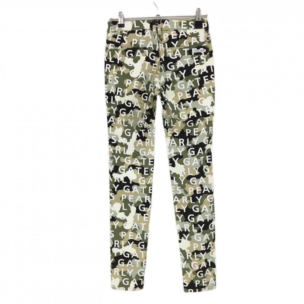 【新品】パーリーゲイツ パンツ カーキ×白 ロゴ総柄 カモフラ調 迷彩 ロゴ刺しゅう レディース 0(S) ゴルフウェア PEARLY GATES
