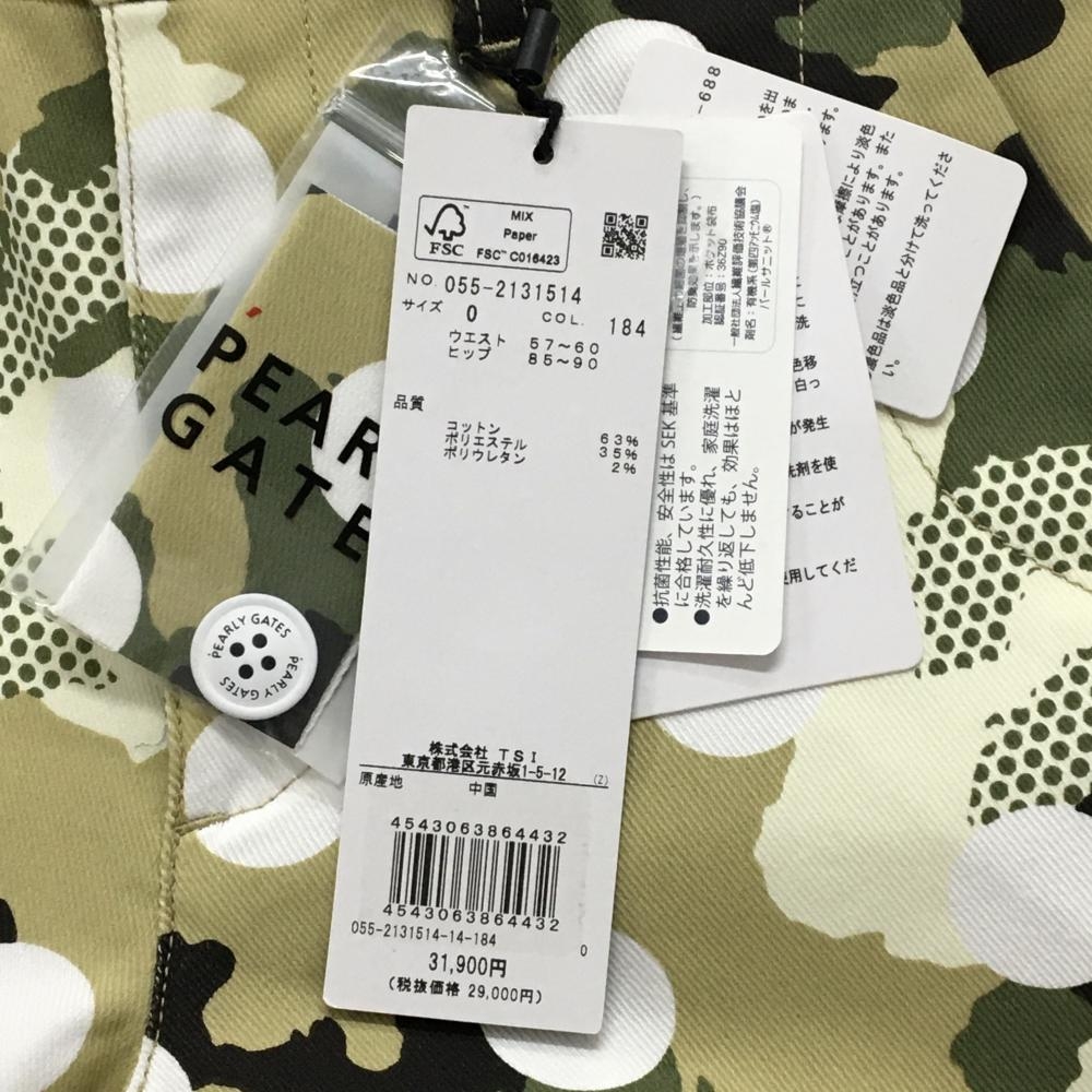 【新品】パーリーゲイツ パンツ カーキ×白 カモフラ調 迷彩 ドット レディース 0(S) ゴルフウェア PEARLY GATES