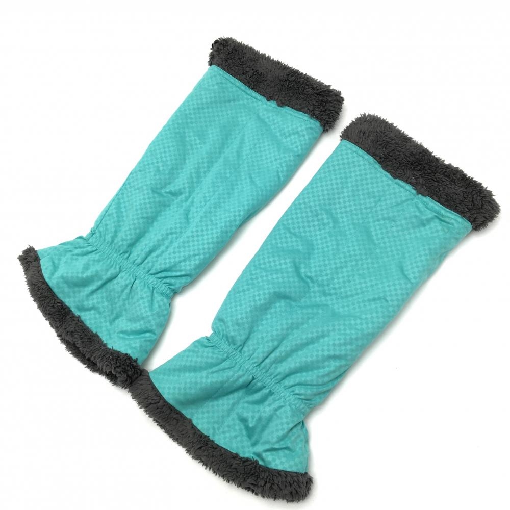 【超美品】ヒールクリーク レッグウォーマー ブルーグリーン ブロックチェック 裏ボア レディース ゴルフウェア Heal Creek