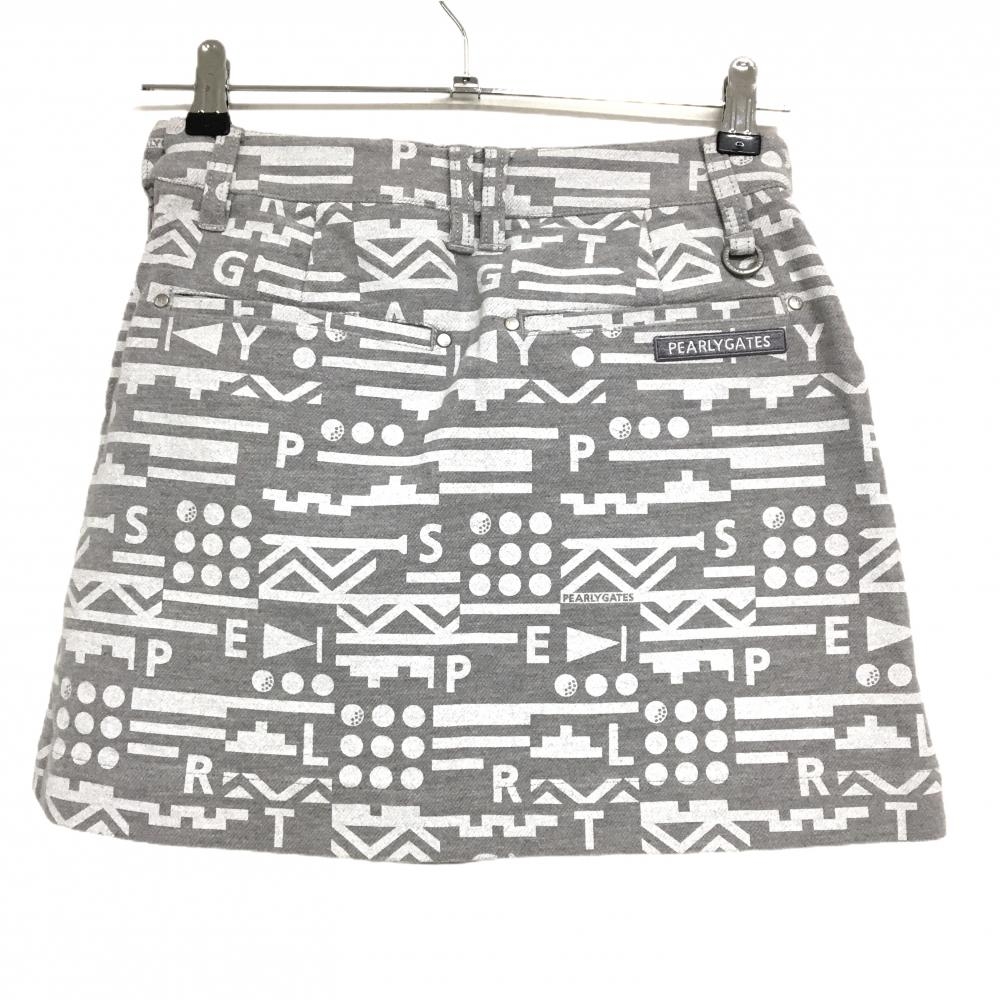 【新品】パーリーゲイツ スカート グレー×白 総柄 フリンジ ストレッチ レディース 00(XS) ゴルフウェア PEARLY GATES
