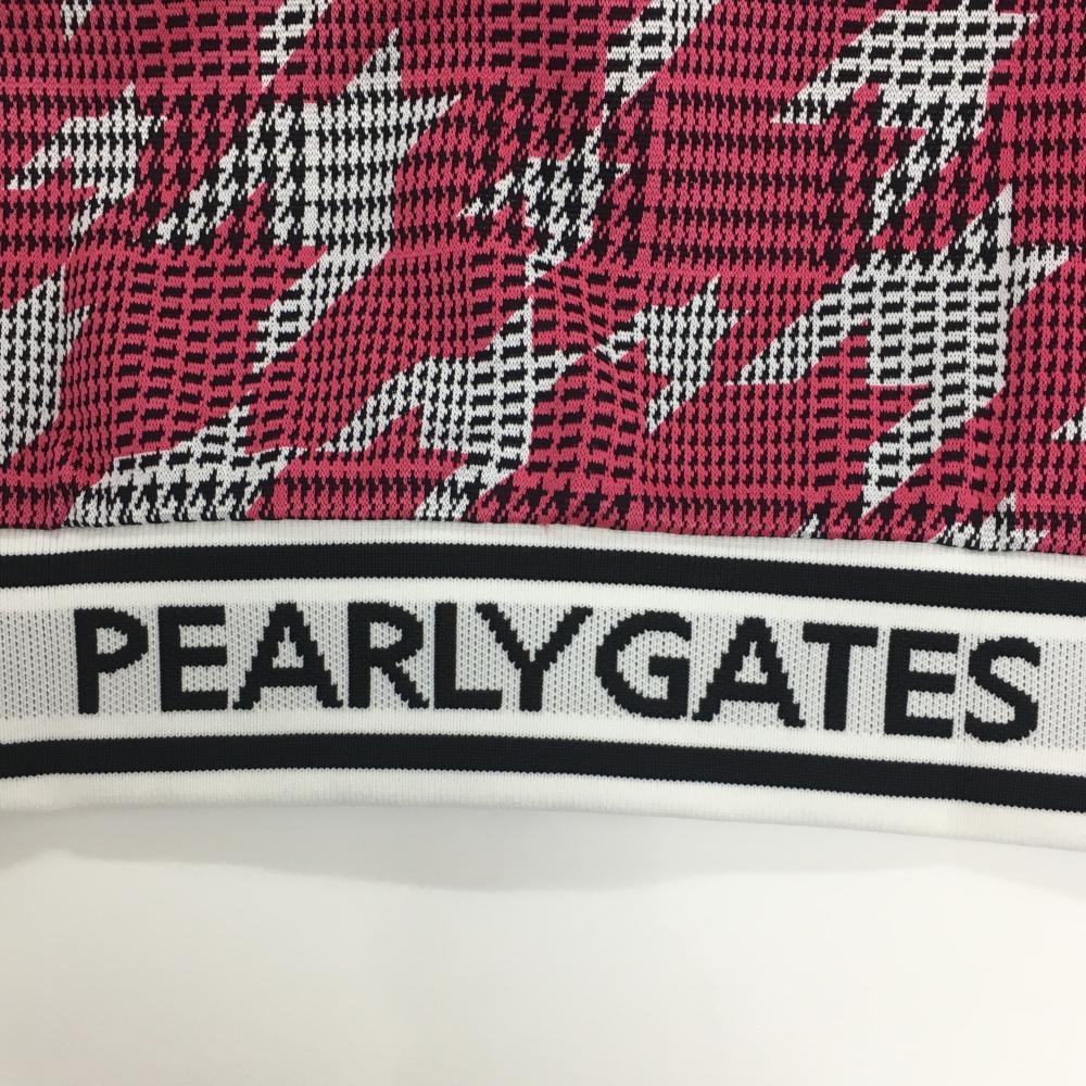 【新品】パーリーゲイツ ジップパーカー 白×ピンク 千鳥柄 後ろ裾ロゴ レディース 0(S) ゴルフウェア PEARLY GATES