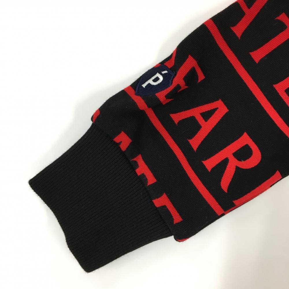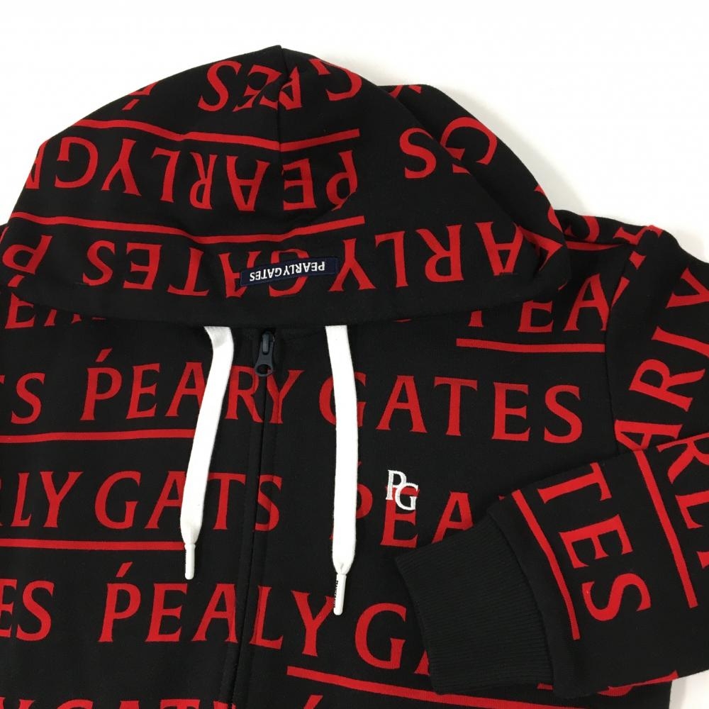 【新品】パーリーゲイツ ジップパーカー 黒×レッド ロゴ総柄 刺しゅう白 レディース 0(S) ゴルフウェア PEARLY GATES