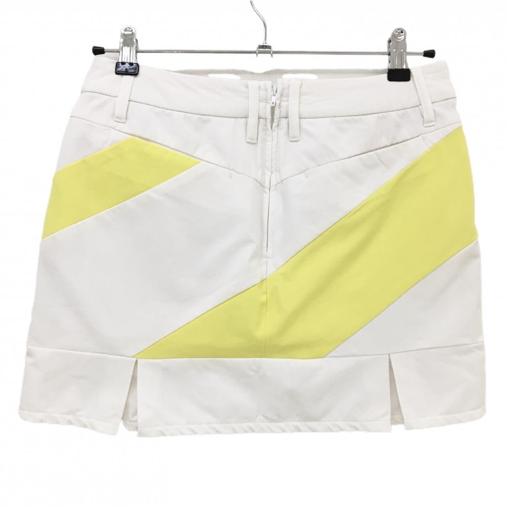 【美品】デサントゴルフ スカート 白×イエロー 立体ロゴ 裏微起毛 内側インナーパンツ 中田英寿 レディース 64/M ゴルフウェア DESCENTE