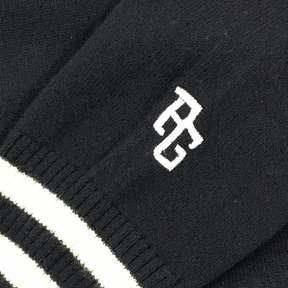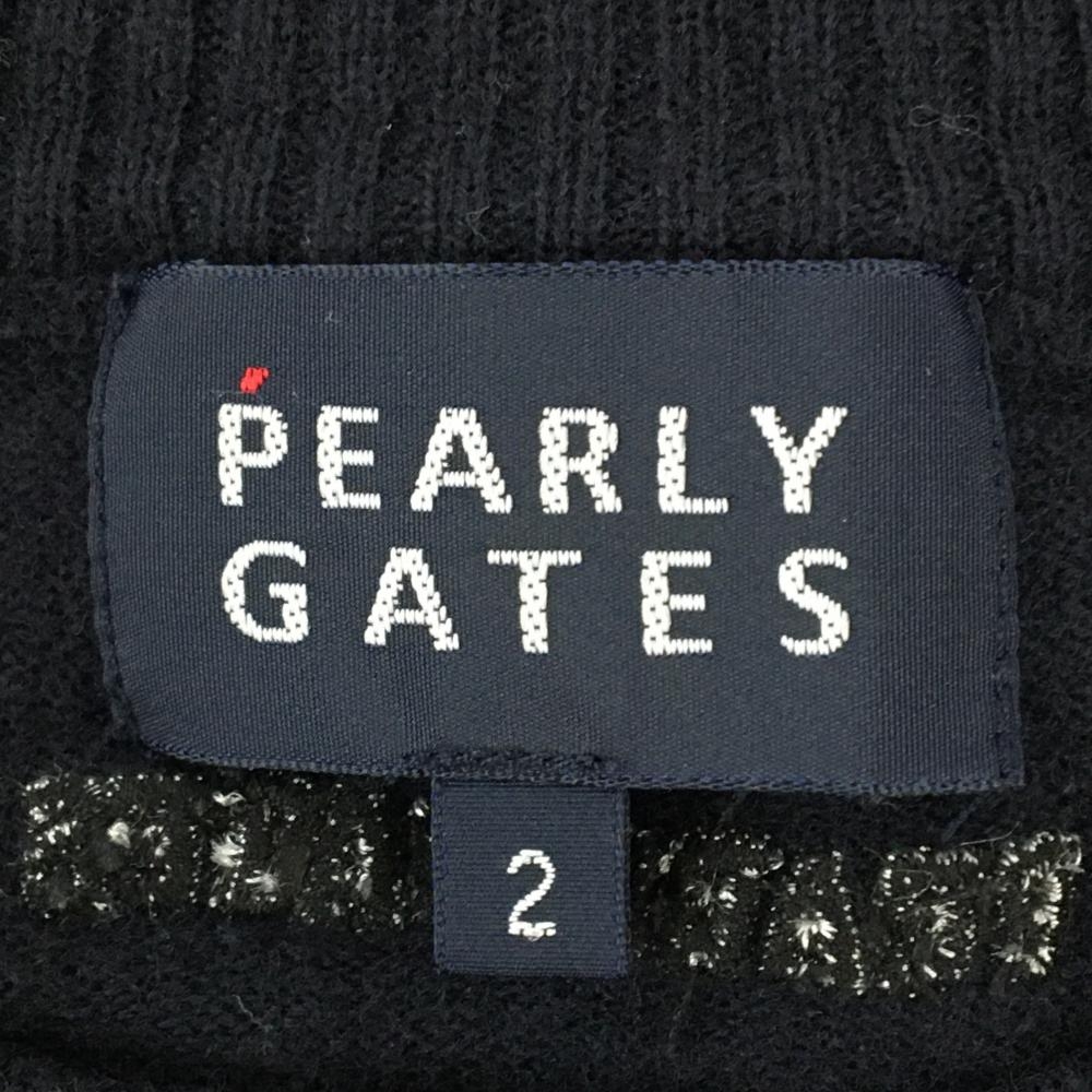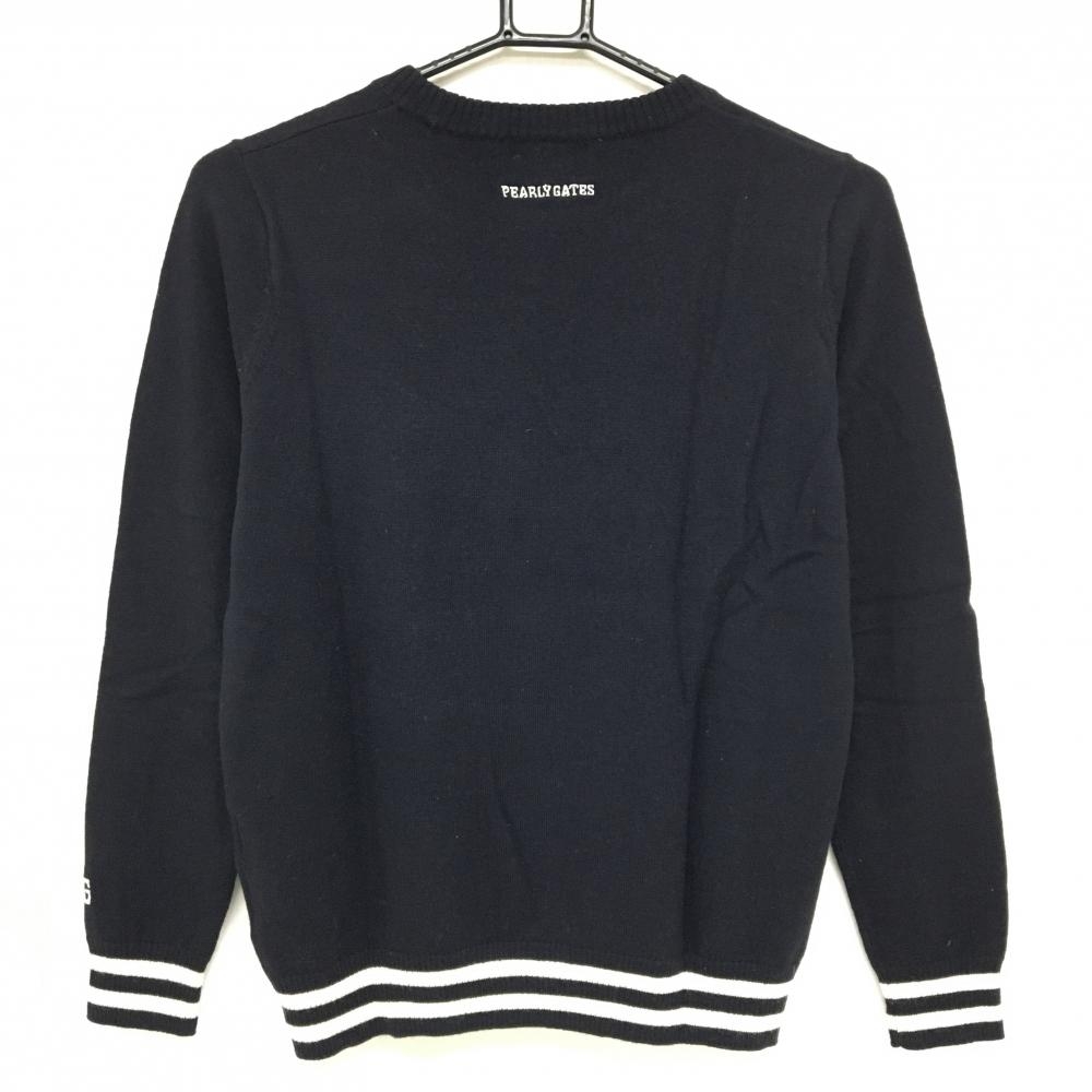 【美品】パーリーゲイツ セーター ネイビー×白 袖口・裾2ライン ウール100% ニット レディース 2(L) ゴルフウェア PEARLY GATES