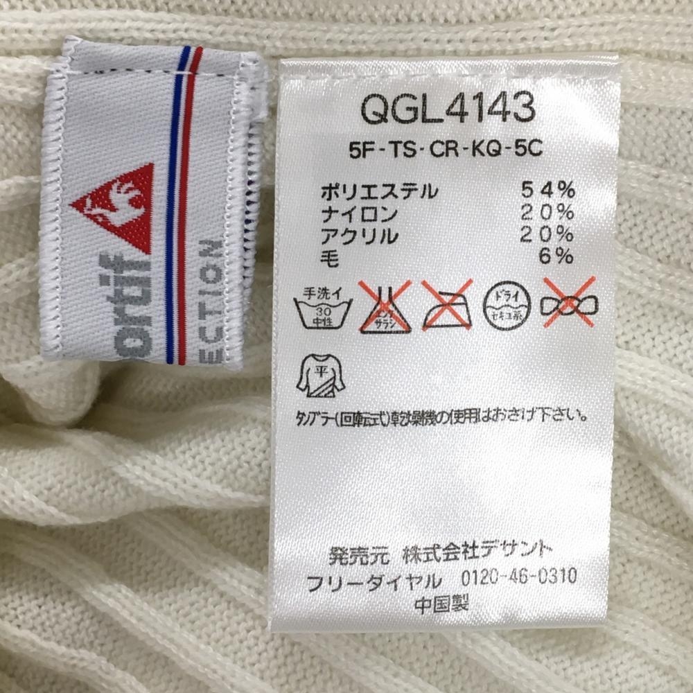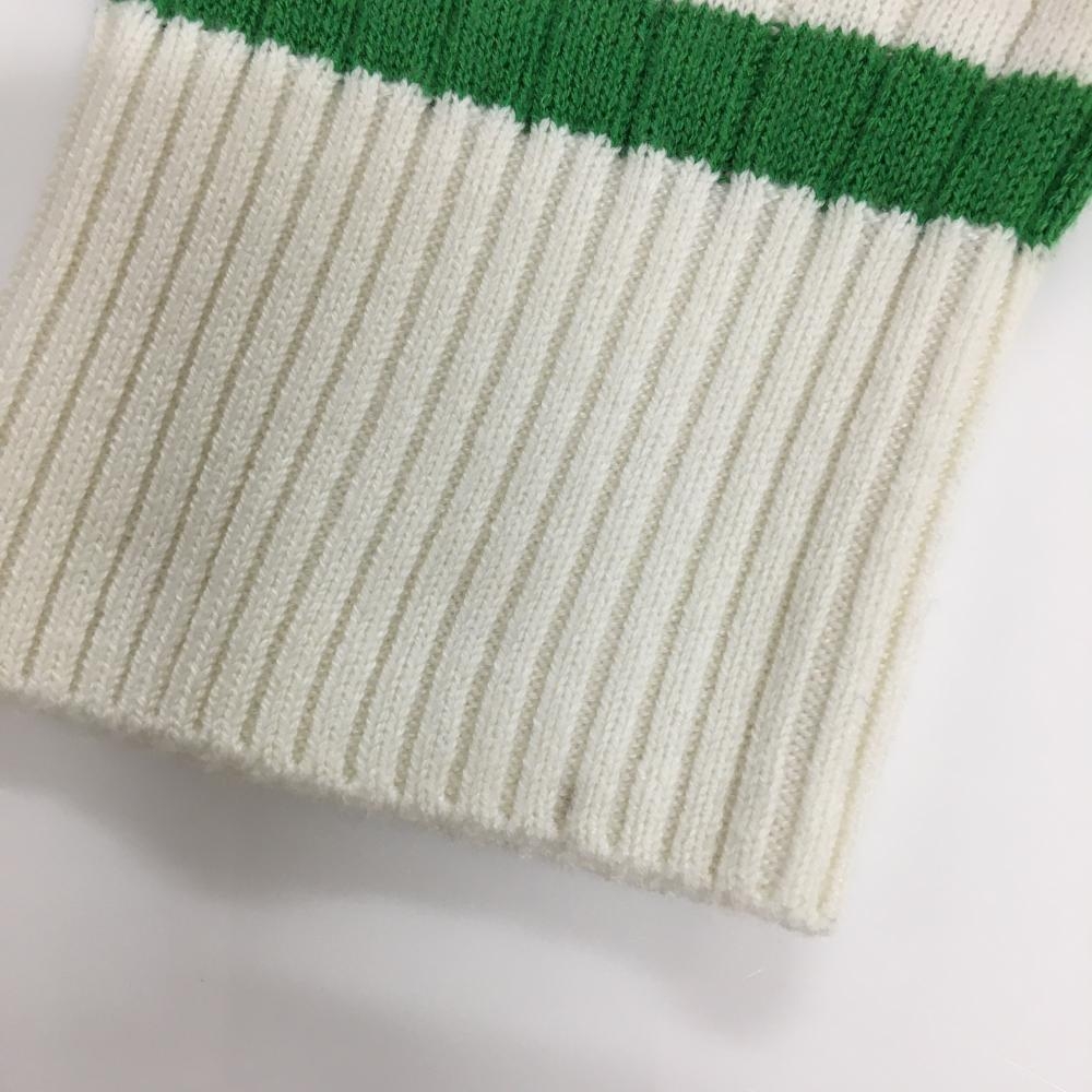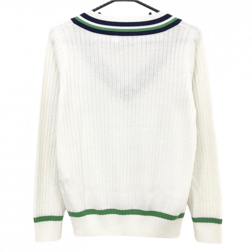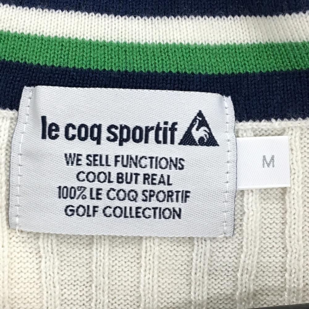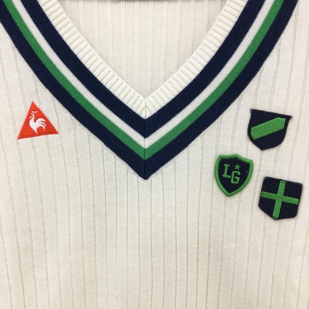 【超美品】ルコックゴルフ セーター 白×ネイビー×グリーン 胸ロゴ ウール混 ニット レディース M ゴルフウェア le coq sportif