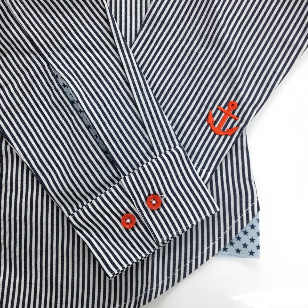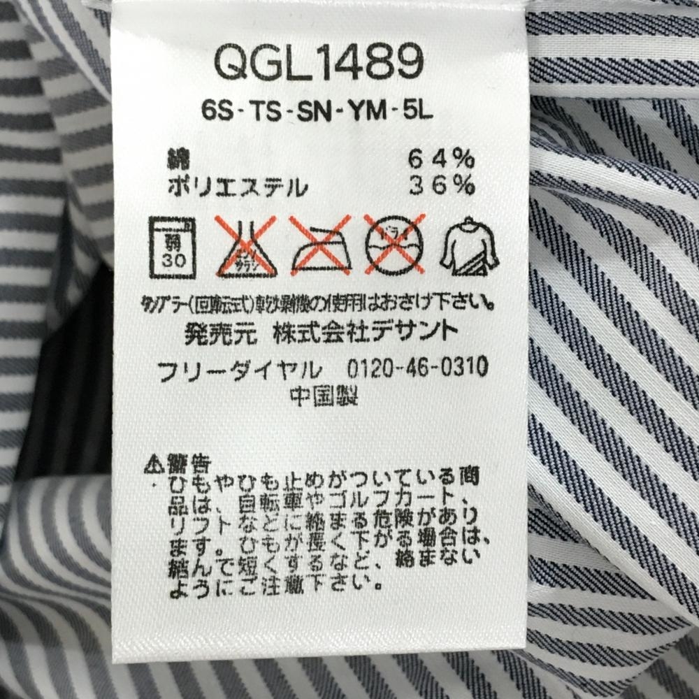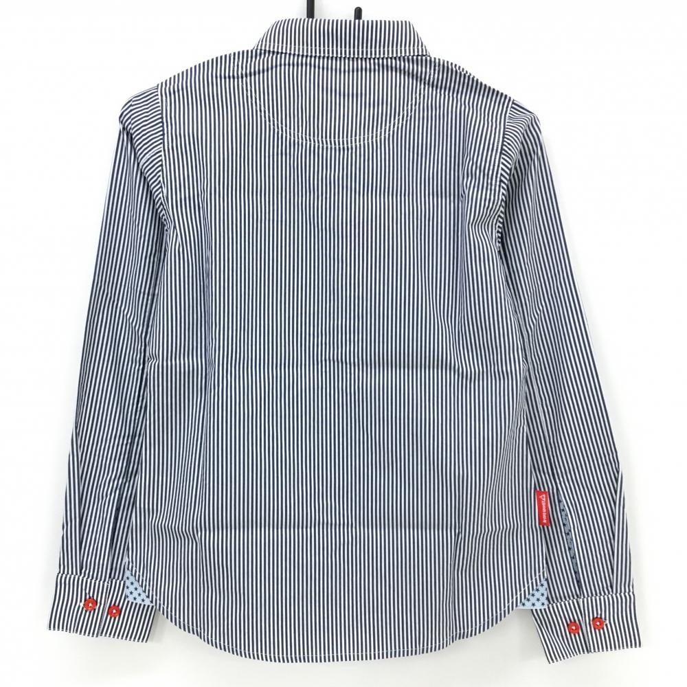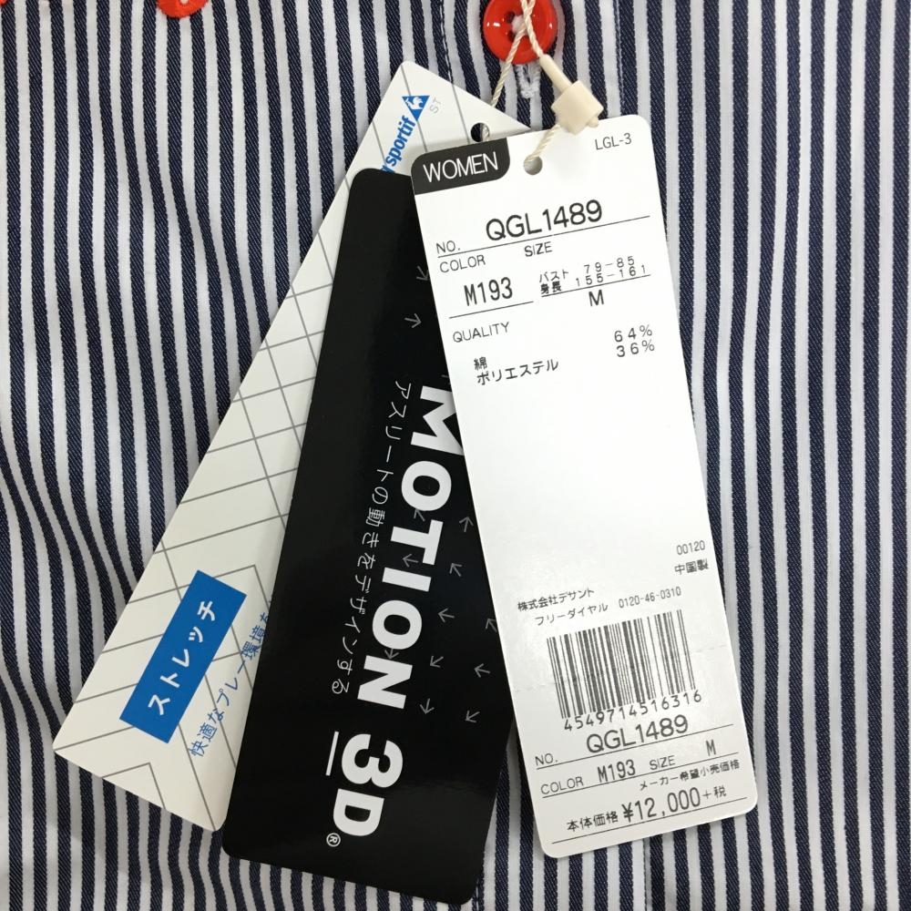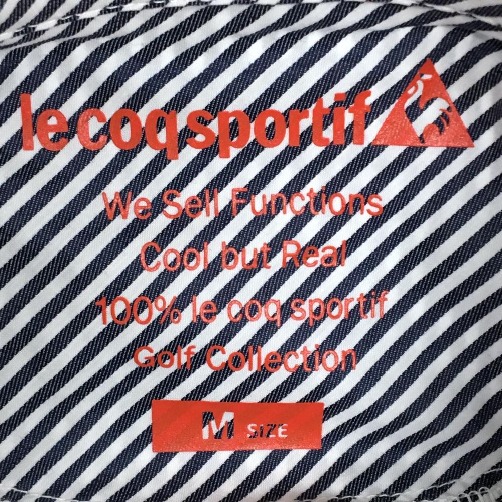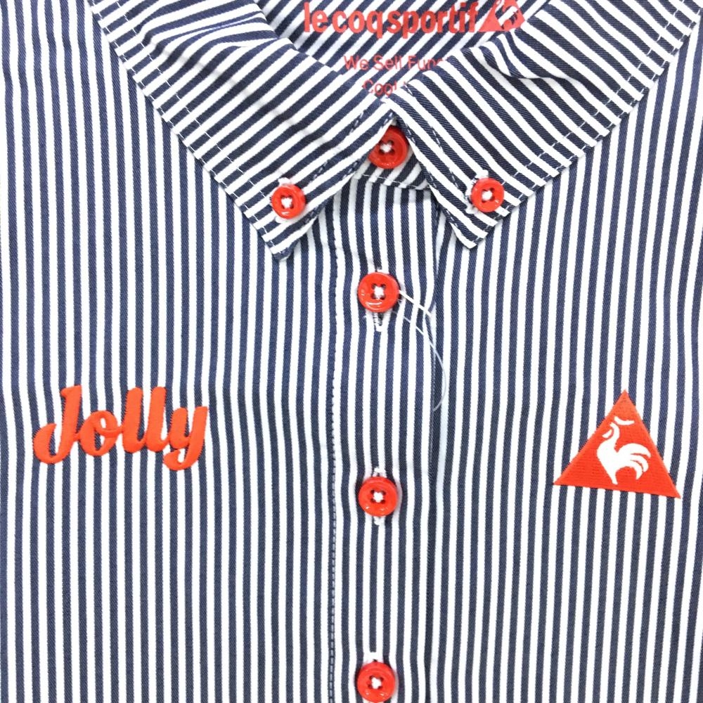 【新品】ルコックゴルフ 長袖シャツ 白×ネイビー系 ストライプ ボタンダウン ロゴレッド レディース M ゴルフウェア le coq sportif