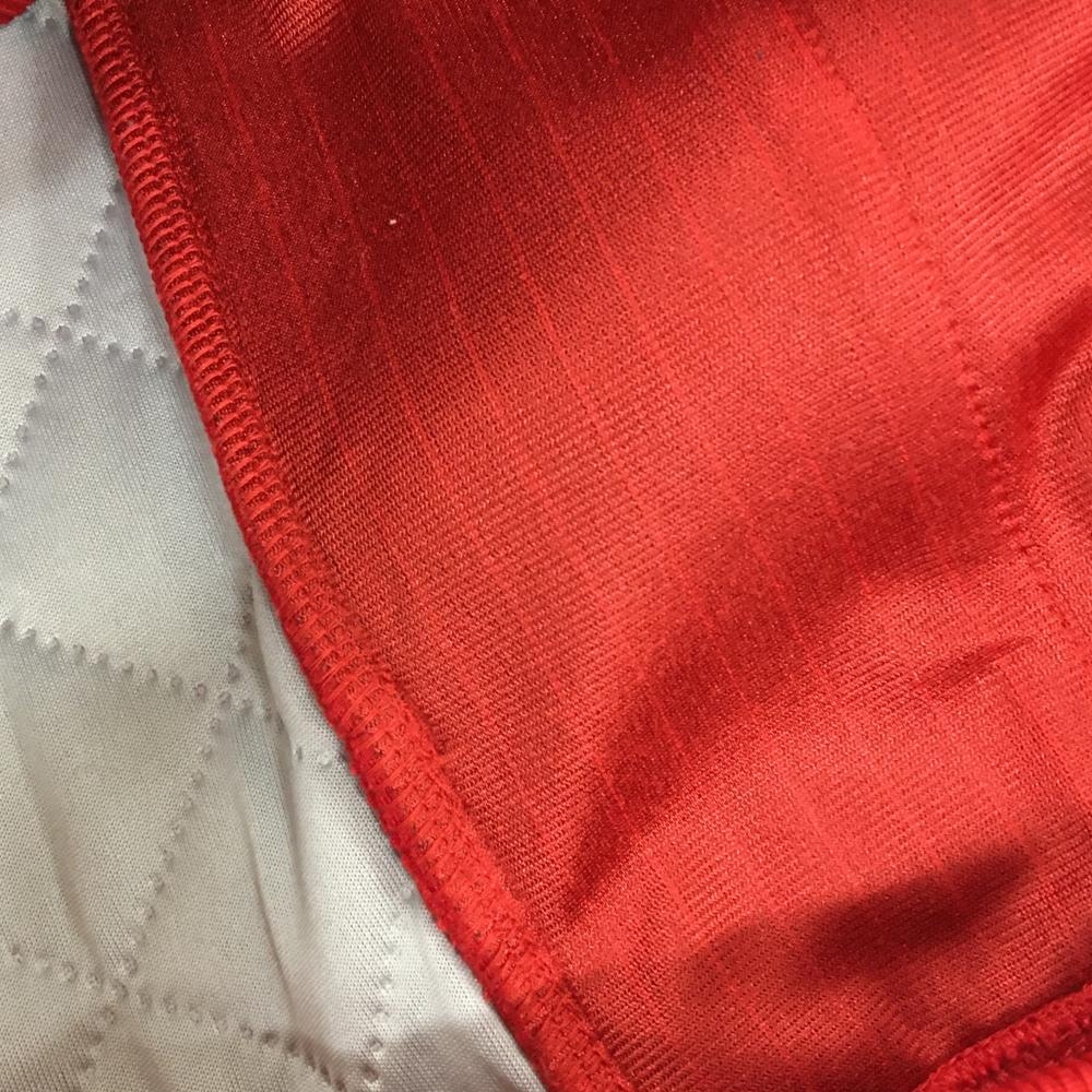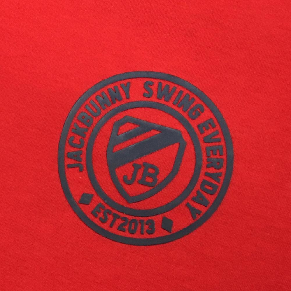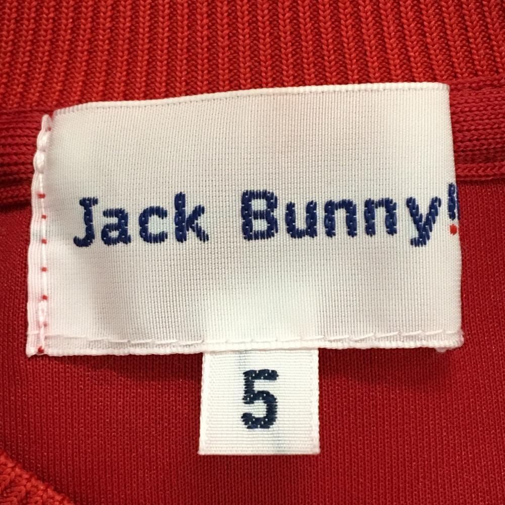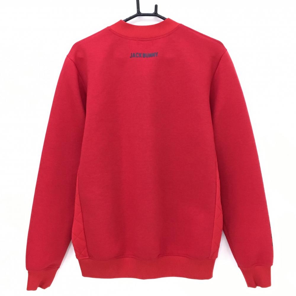 【美品】ジャックバニー ブルゾン レッド ロゴネイビー ハーフジップ スタンドカラー メンズ 5(L) ゴルフウェア Jack Bunny