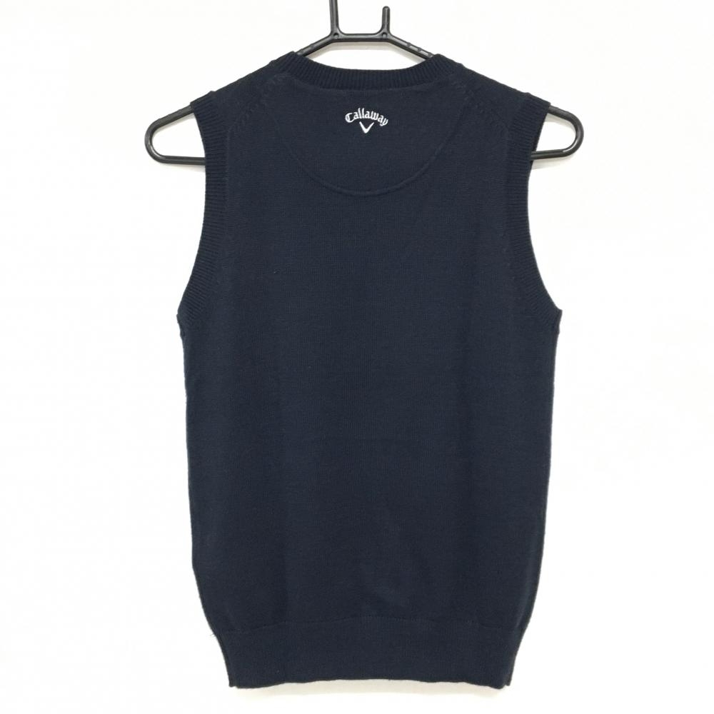 【超美品】キャロウェイ ニットベスト ネイビー×白 前ロゴ 英字 レディース M ゴルフウェア Callaway