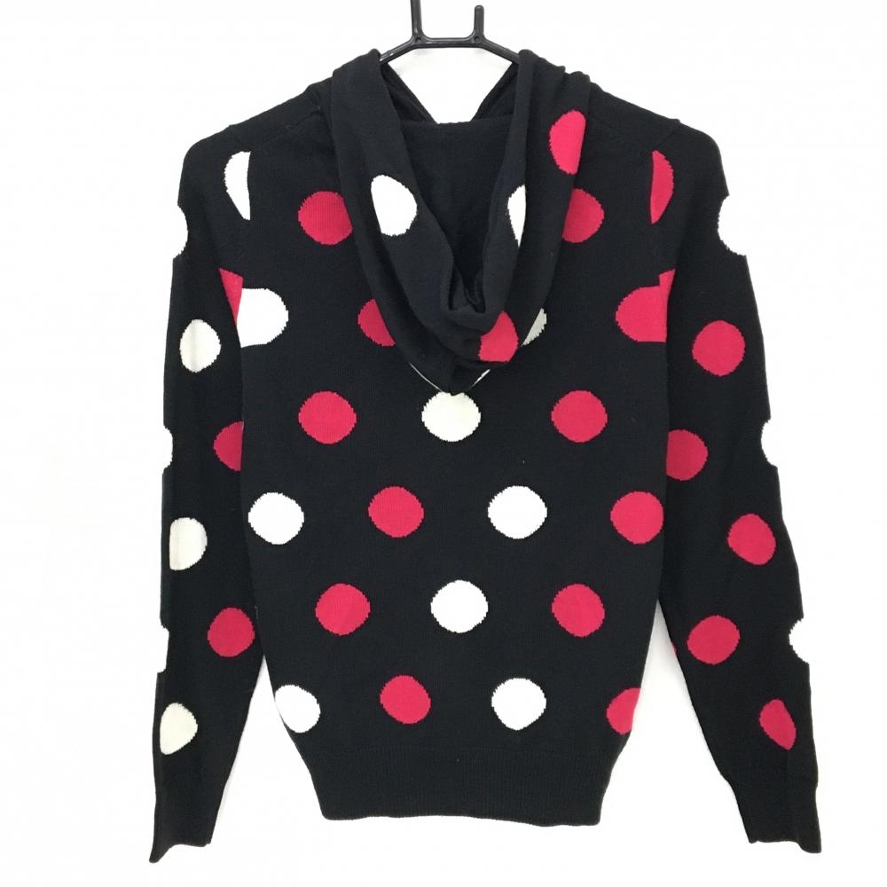 キャロウェイ ニットパーカー 黒×白×ピンク ドット フード付きセーター ニット レディース M ゴルフウェア Callaway