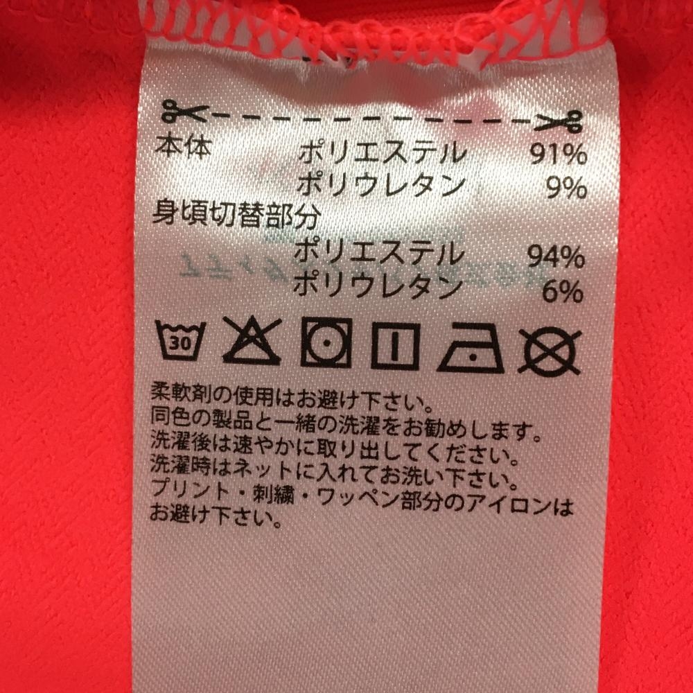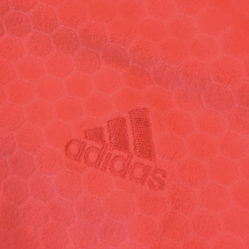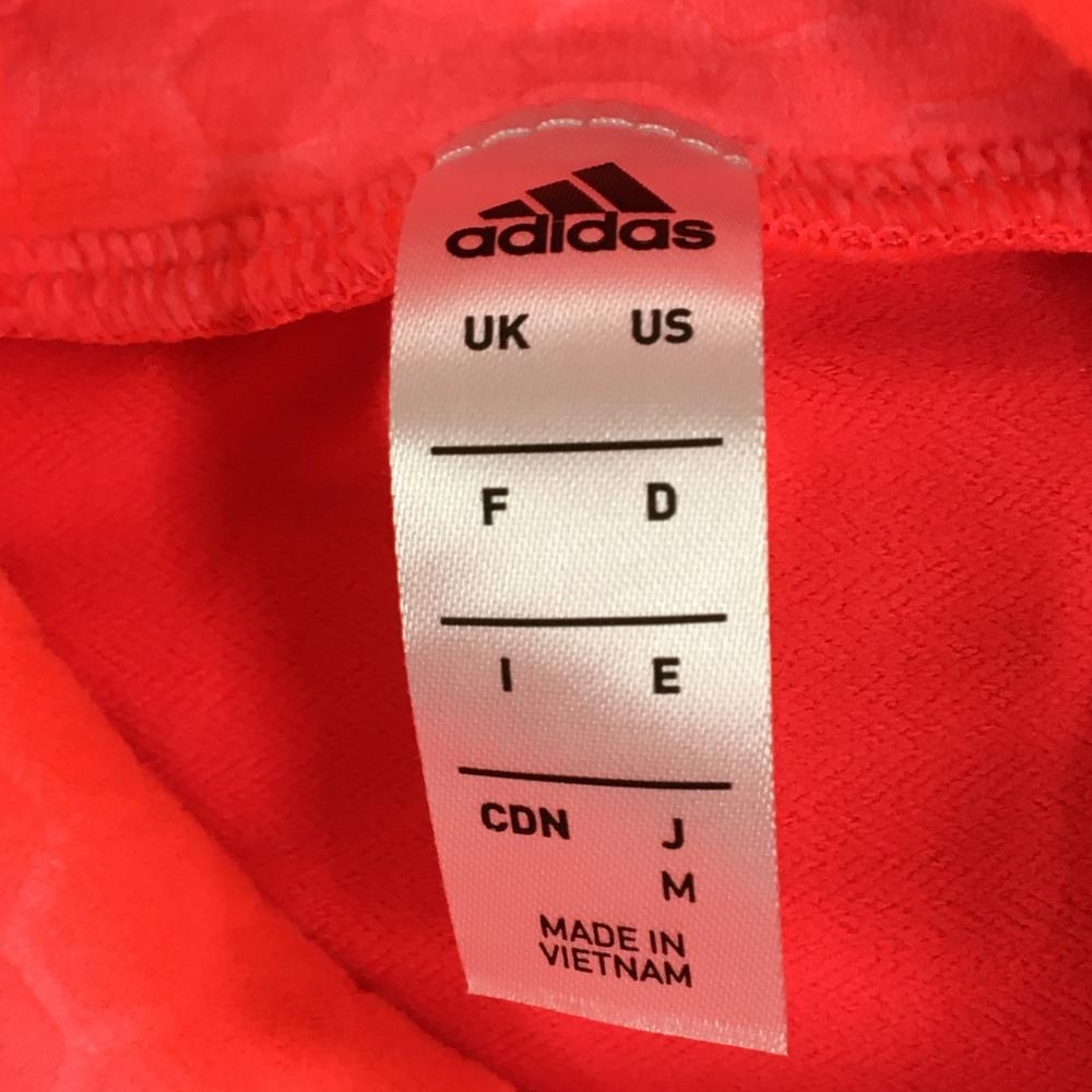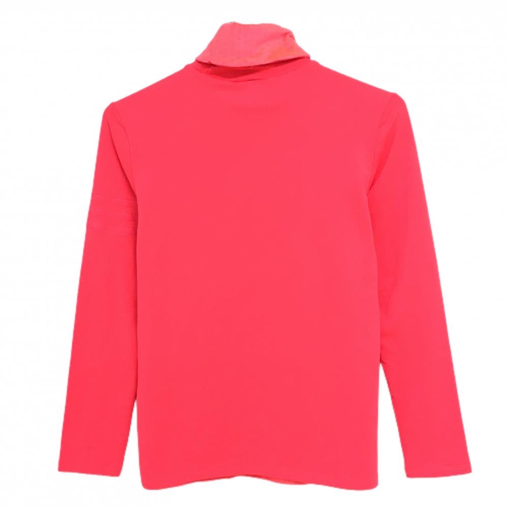 【超美品】アディダス 長袖タートルネックシャツ 蛍光レッド 前面ハニカム柄 前面・ネック起毛素材 レディース M ゴルフウェア adidas