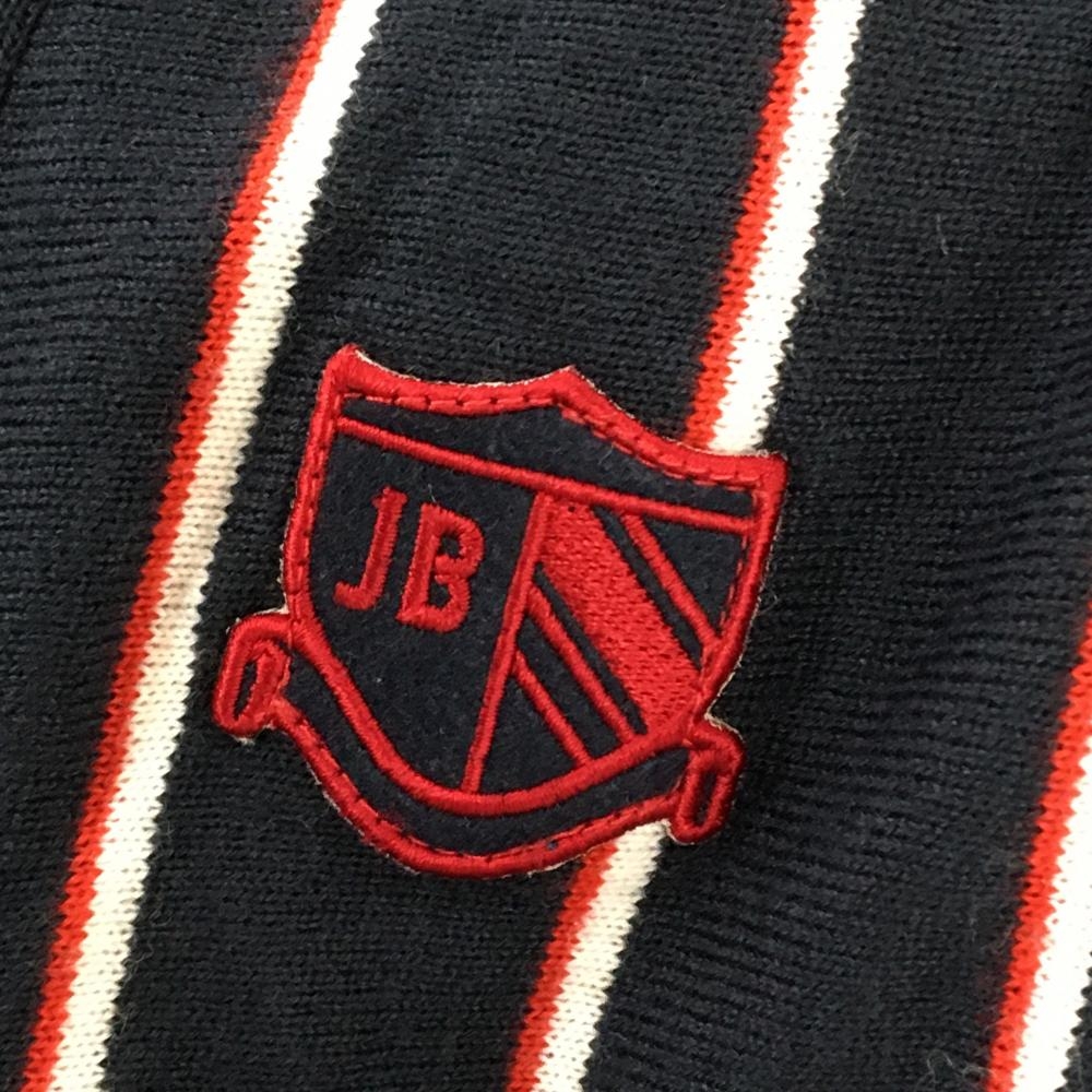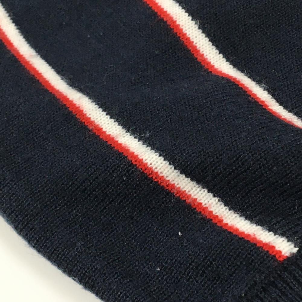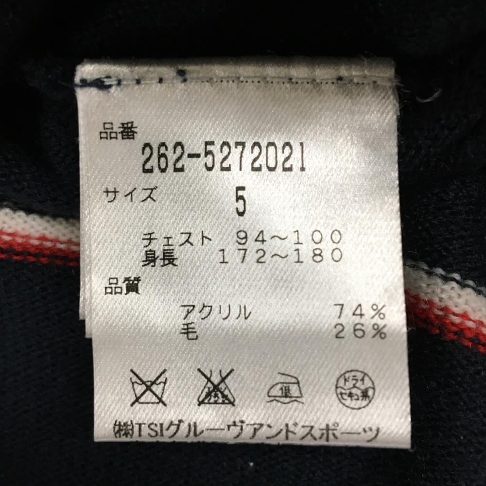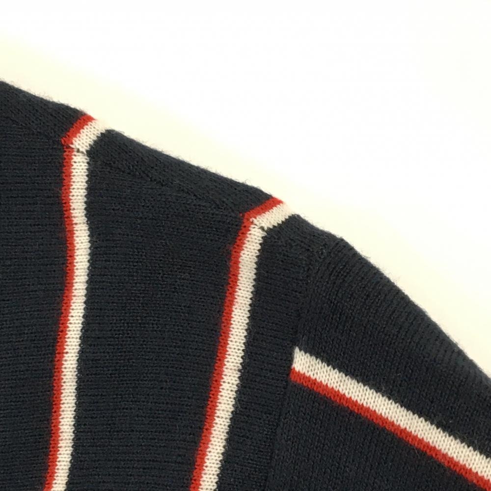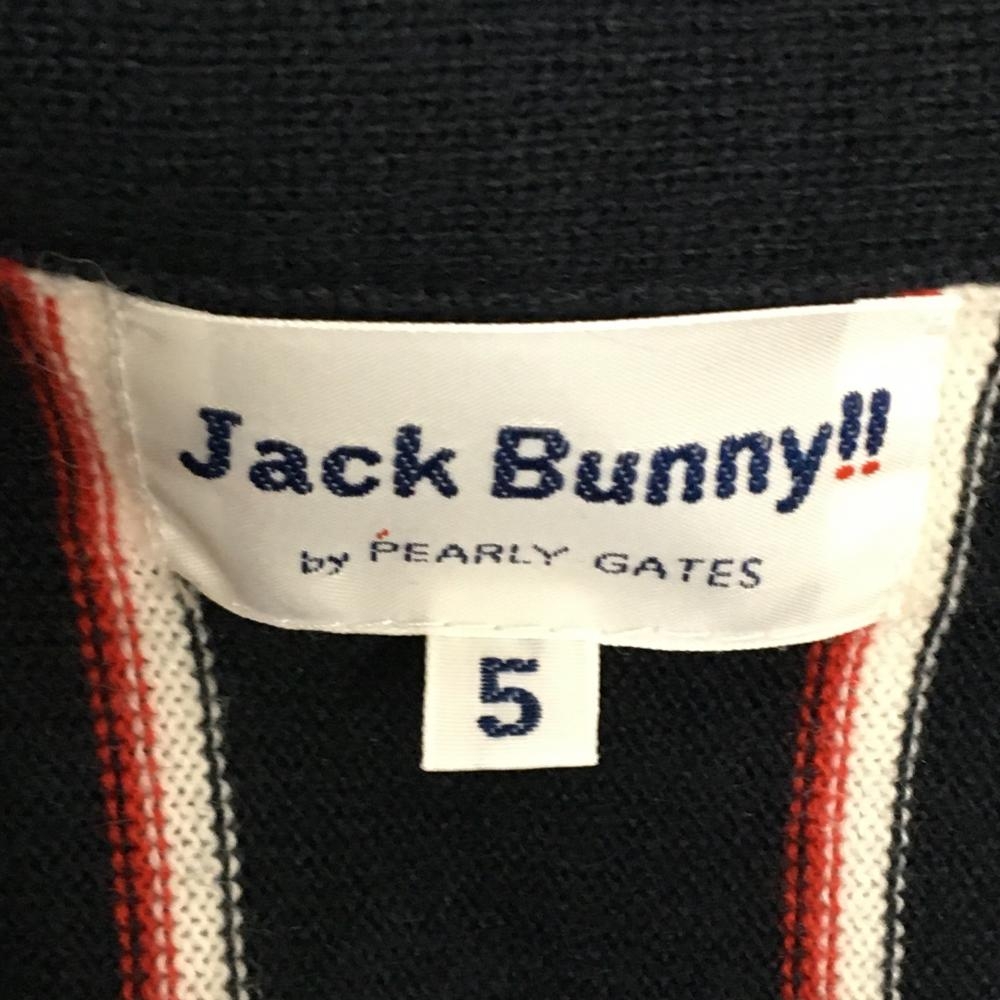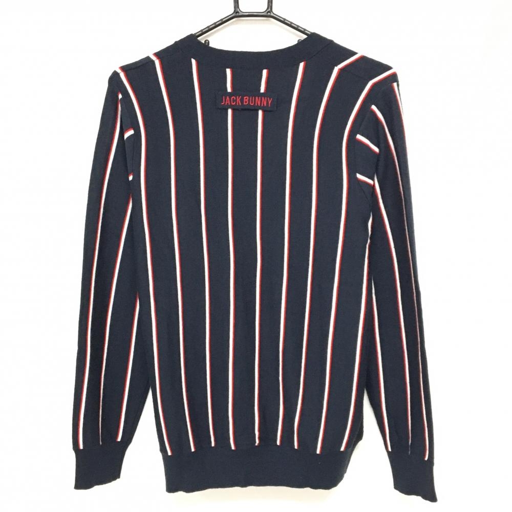 【美品】ジャックバニー カーディガン ネイビー×白 ストライプ柄 ロゴワッペン ウール混 メンズ 5(L) ゴルフウェア Jack Bunny