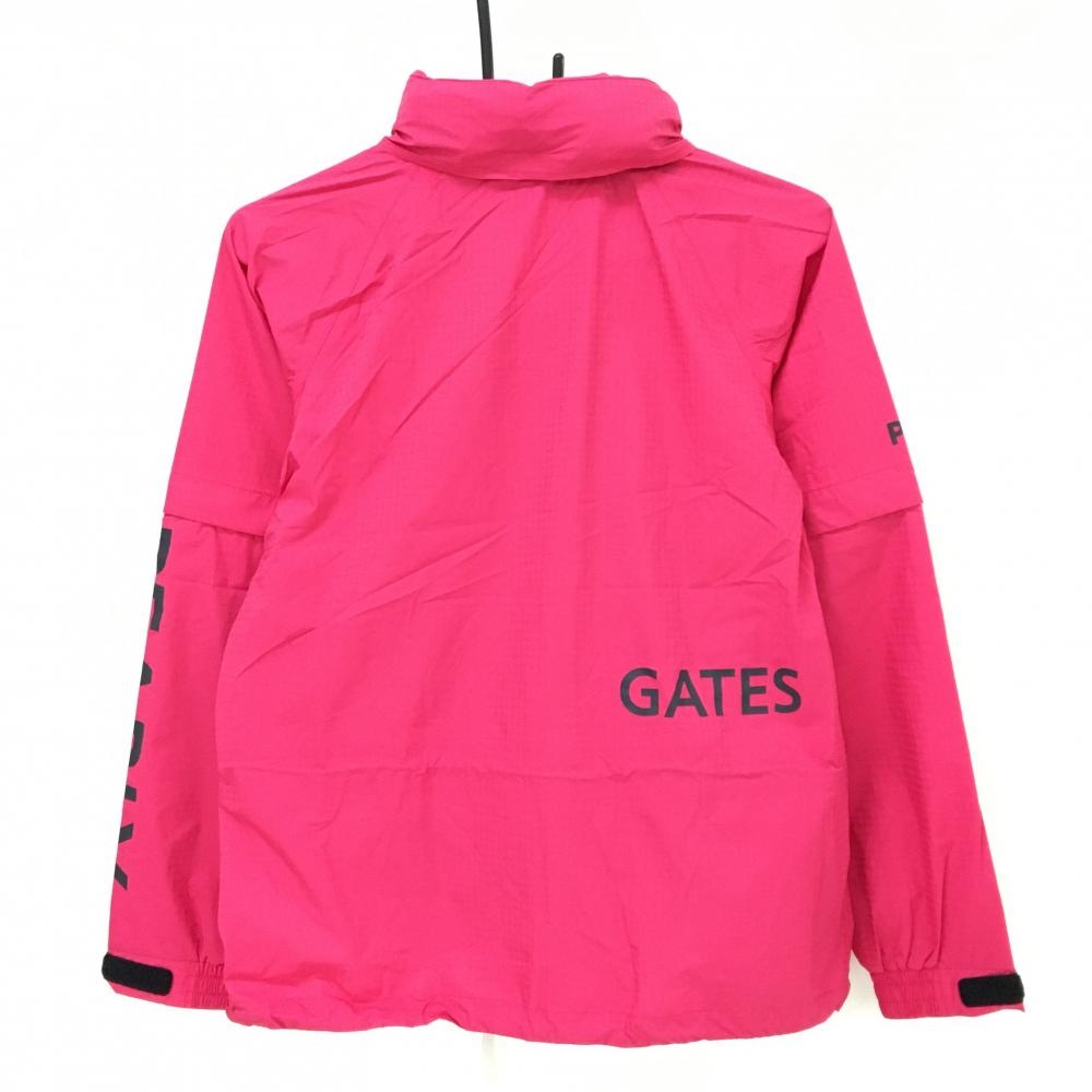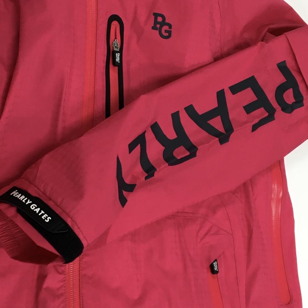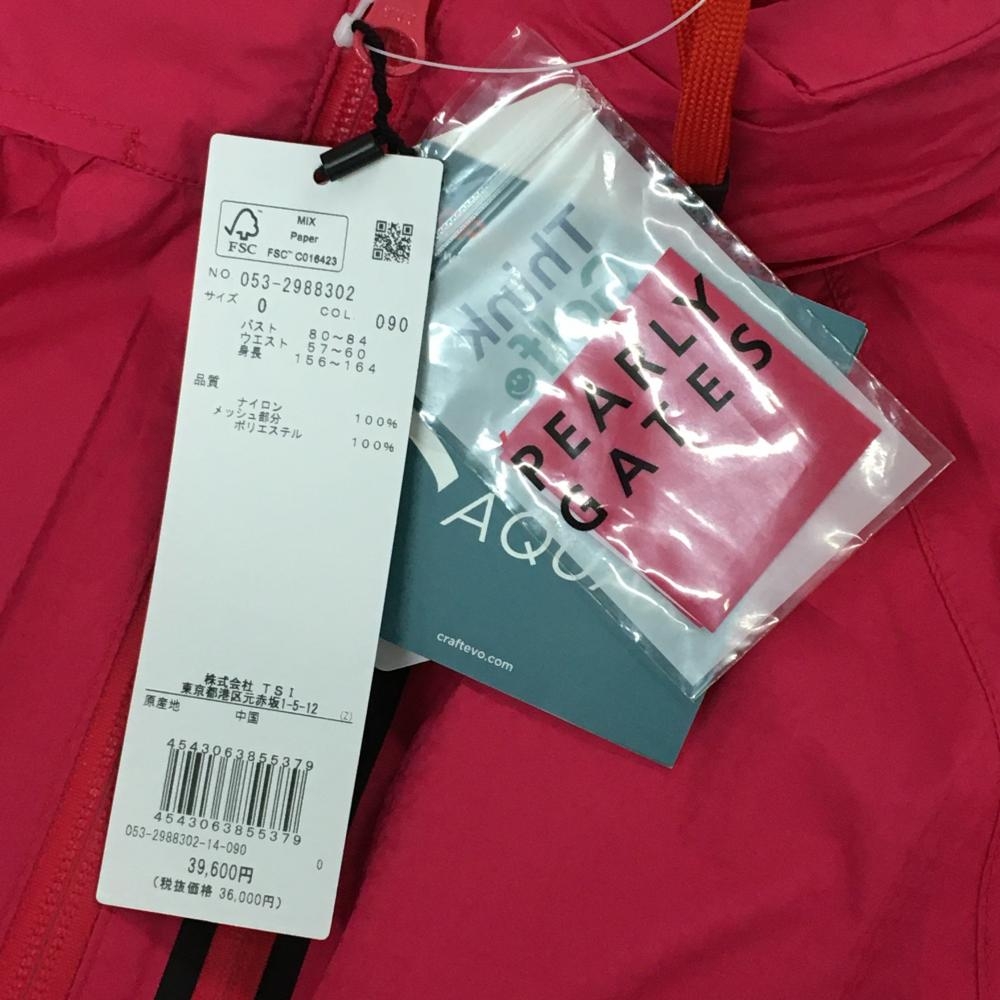 【新品】パーリーゲイツ 2WAYレインジャケット ピンク×黒 総柄地模様 裾ドローコード レディース 0(S) ゴルフウェア PEARLY GATES
