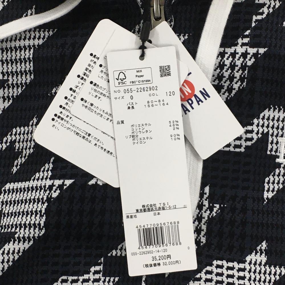 【新品】パーリーゲイツ ジップパーカー ダークネイビー×白 千鳥柄 後ろ裾ロゴ レディース 0(S) ゴルフウェア PEARLY GATES