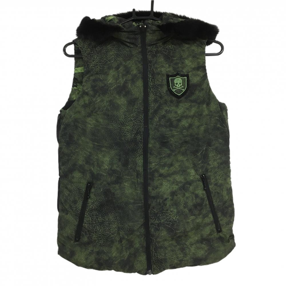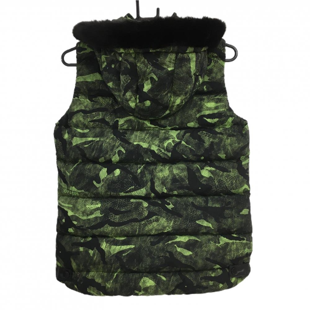 【美品】ダンスウィズドラゴン リバーシブルダウンベスト ライトグリーン×黒 レディース 2(M) ゴルフウェア Dance With Dragon