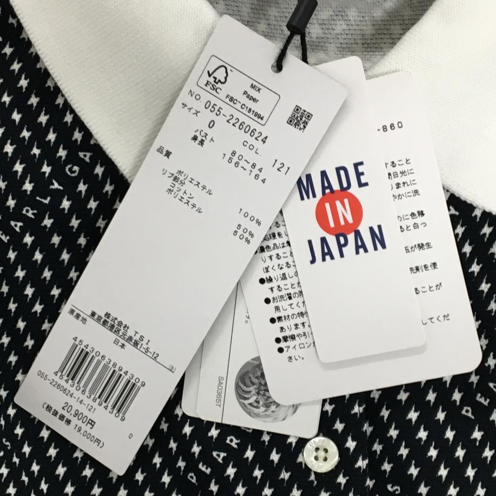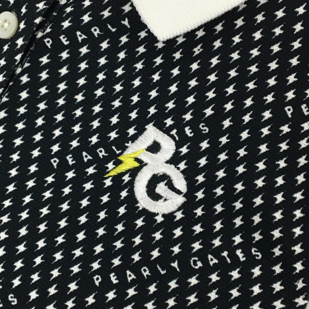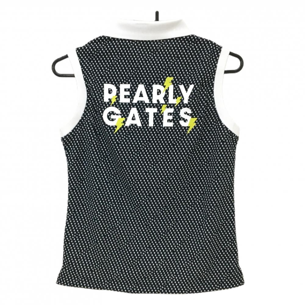 【新品】パーリーゲイツ ノースリーブポロシャツ 黒×白 稲妻柄 ロゴ刺しゅう レディース 0(S) ゴルフウェア PEARLY GATES