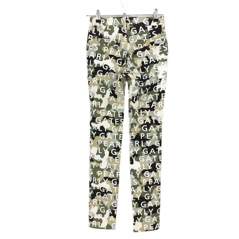 【新品】パーリーゲイツ パンツ カーキ×白 ロゴ総柄 カモフラ調 迷彩 ロゴ刺しゅう レディース 00(XS) ゴルフウェア PEARLY GATES