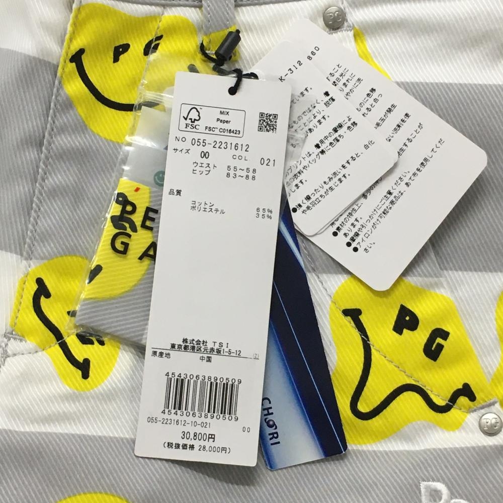【新品】パーリーゲイツ パンツ 白×グレー×イエロー TOKE NIKO ボーダー レディース 00(XS) ゴルフウェア PEARLY GATES