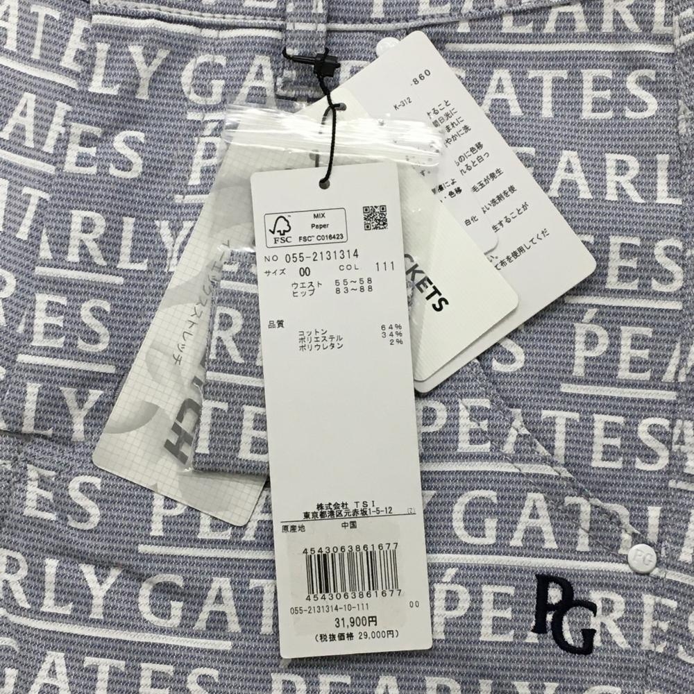 【新品】パーリーゲイツ パンツ ブルー系×白 ロゴ総柄 刺しゅうネイビー レディース 00(XS) ゴルフウェア PEARLY GATES