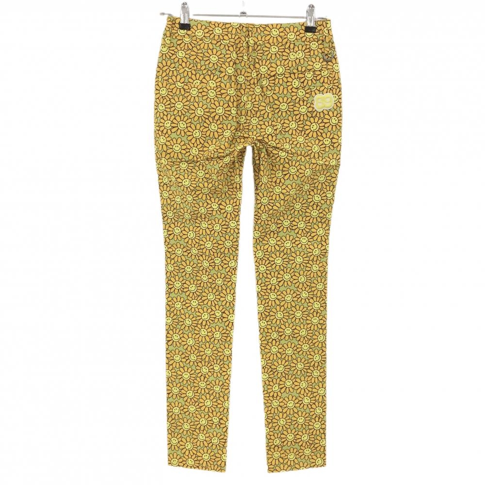 【新品】パーリーゲイツ パンツ ライトグリーン×オレンジ フラワーニコちゃん ロゴ刺しゅう レディース 00(XS) ゴルフウェア PEARLY GATES