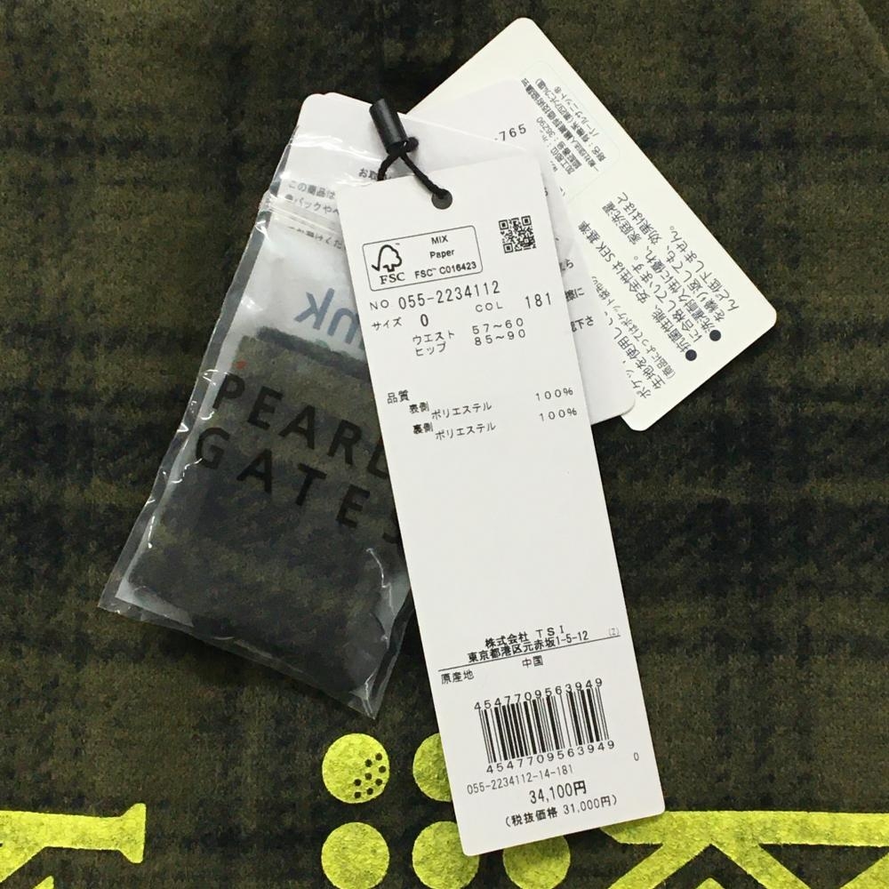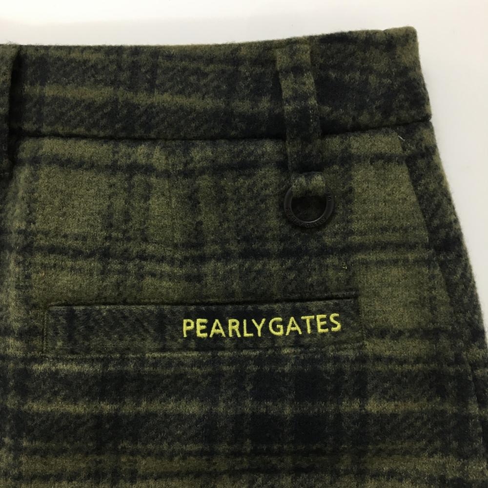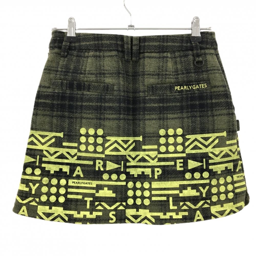 【新品】パーリーゲイツ スカート カーキ×イエロー チェック 表起毛 下部プリント レディース 0(S) ゴルフウェア PEARLY GATES