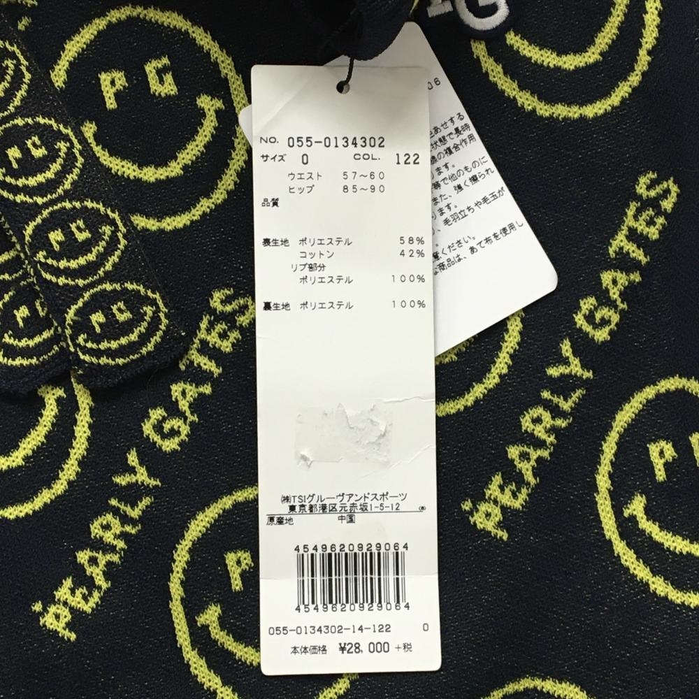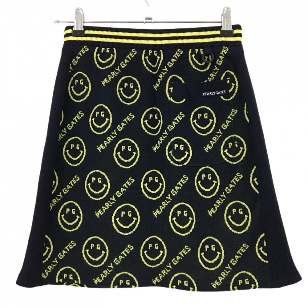 【新品】パーリーゲイツ ニットスカート ダークネイビー×イエロー PGニコちゃん ウエストゴム レディース 0(S) ゴルフウェア PEARLY GATES