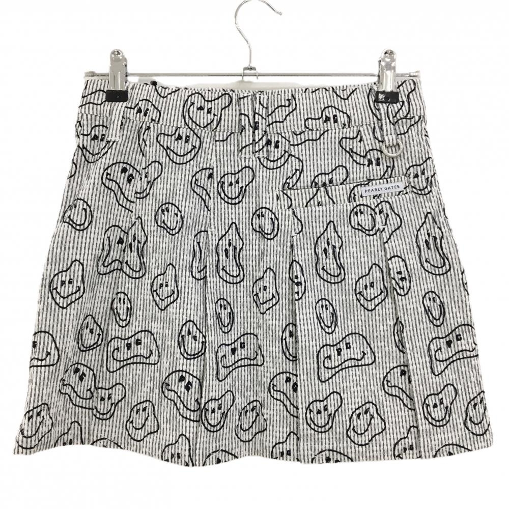 【新品】パーリーゲイツ スカート 白×ダークグレー×黒 TOKE NIKO ストライプ サッカー生地 レディース 0(S) ゴルフウェア PEARLY GATES
