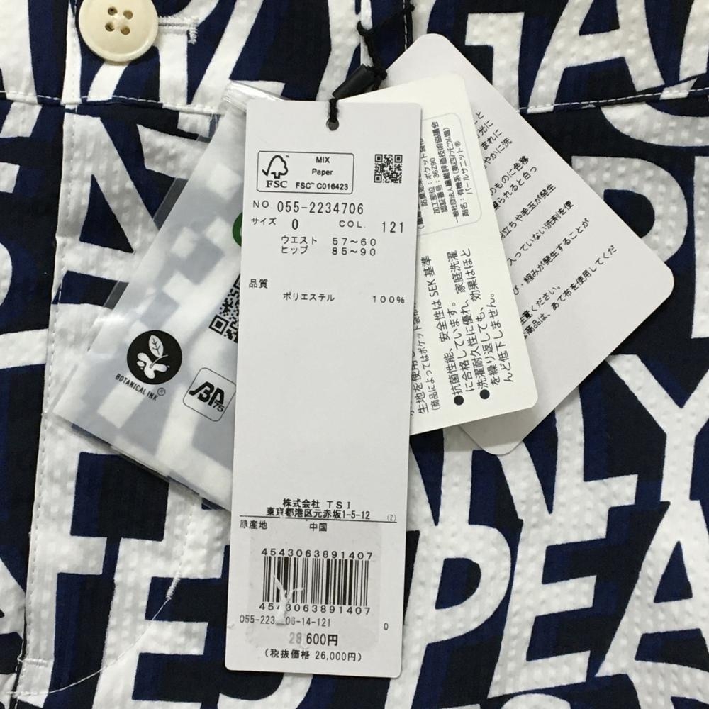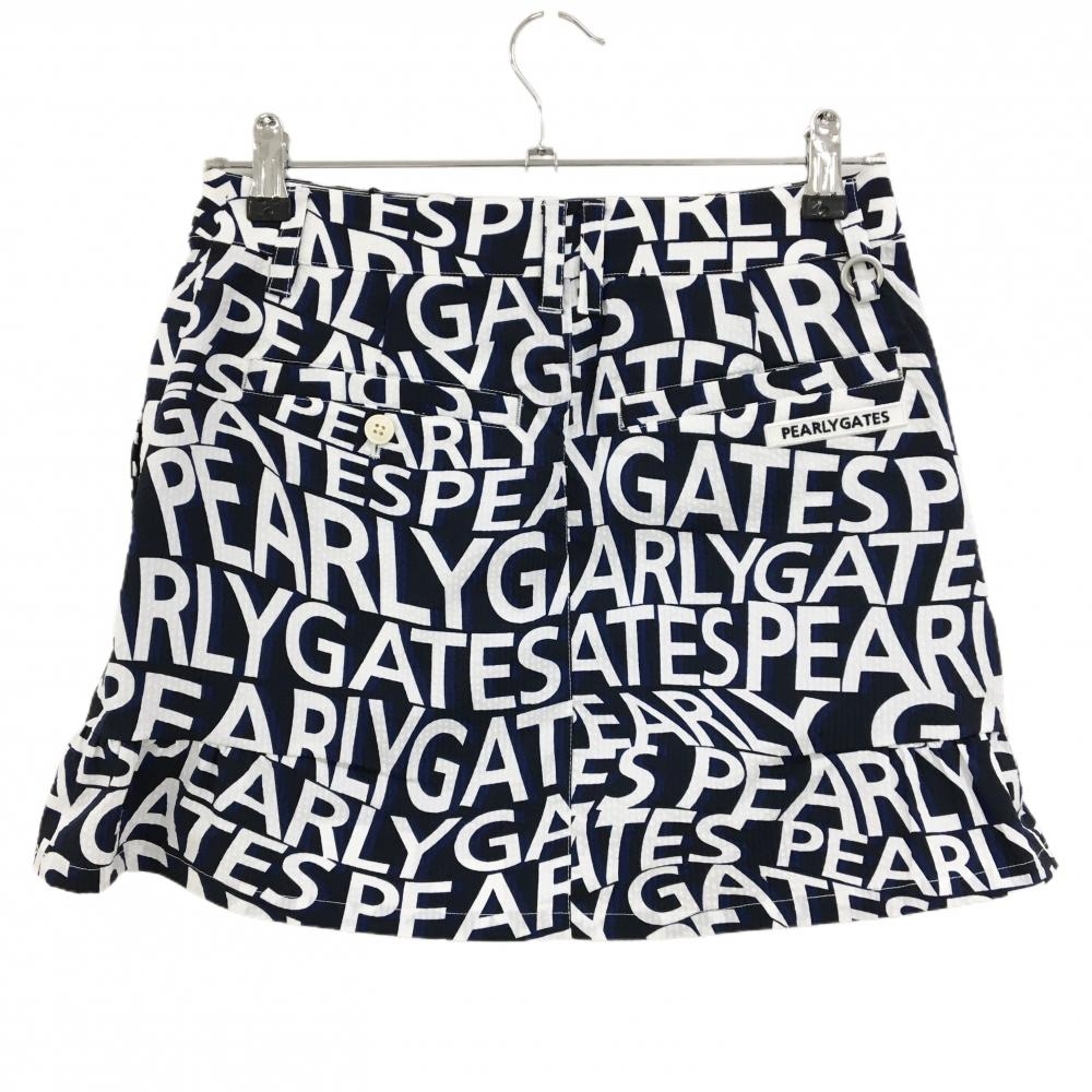 【新品】パーリーゲイツ スカート ダークネイビー×白 ロゴ総柄 サッカー生地 レディース 0(S) ゴルフウェア PEARLY GATES