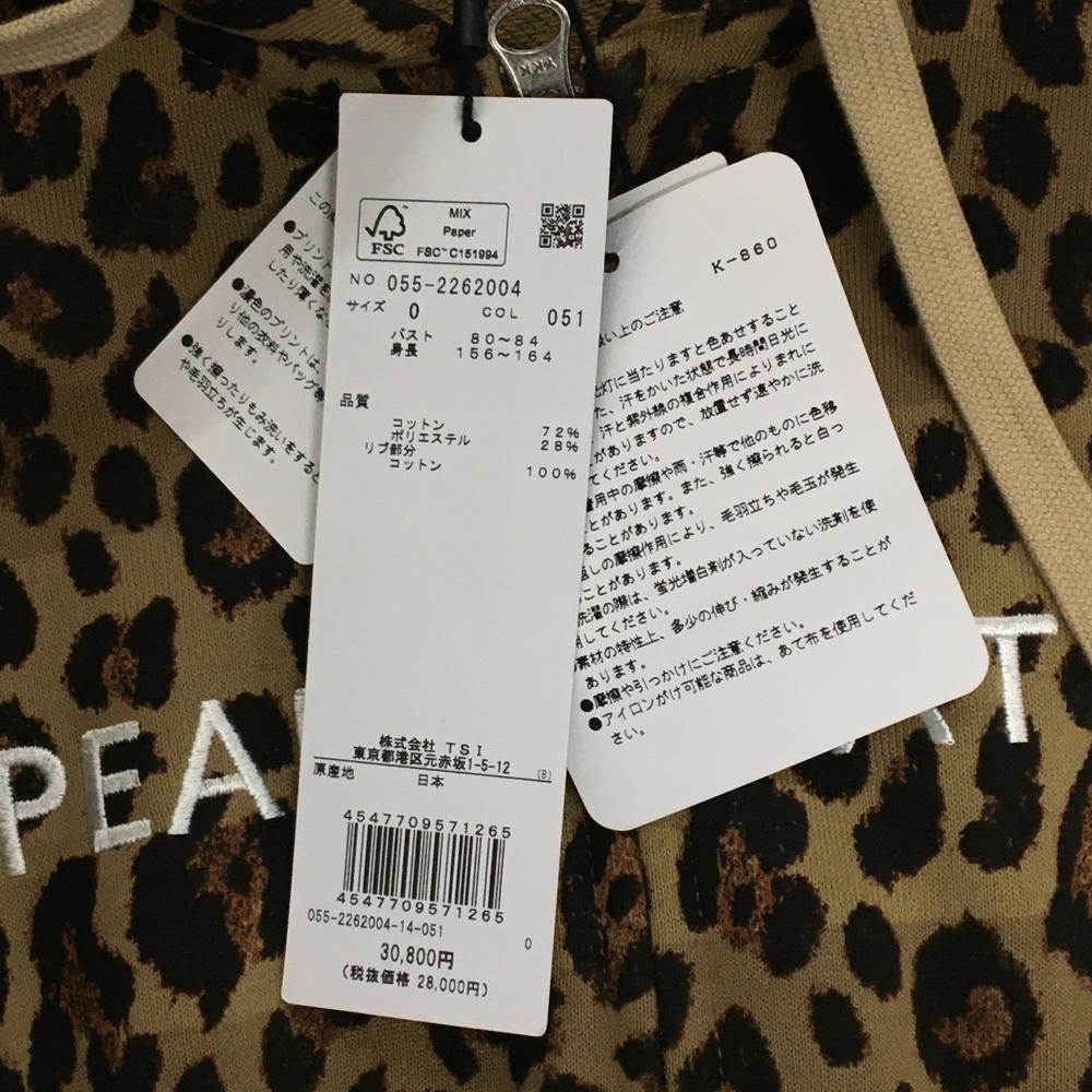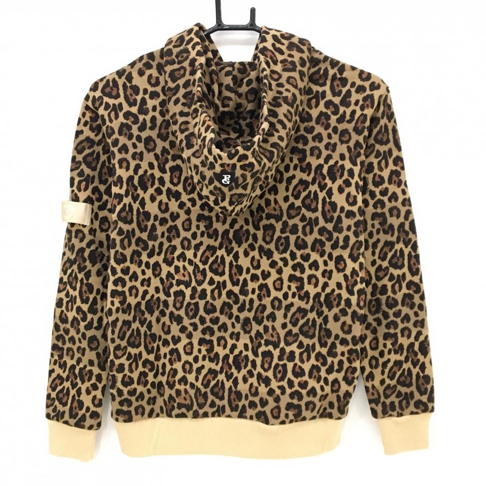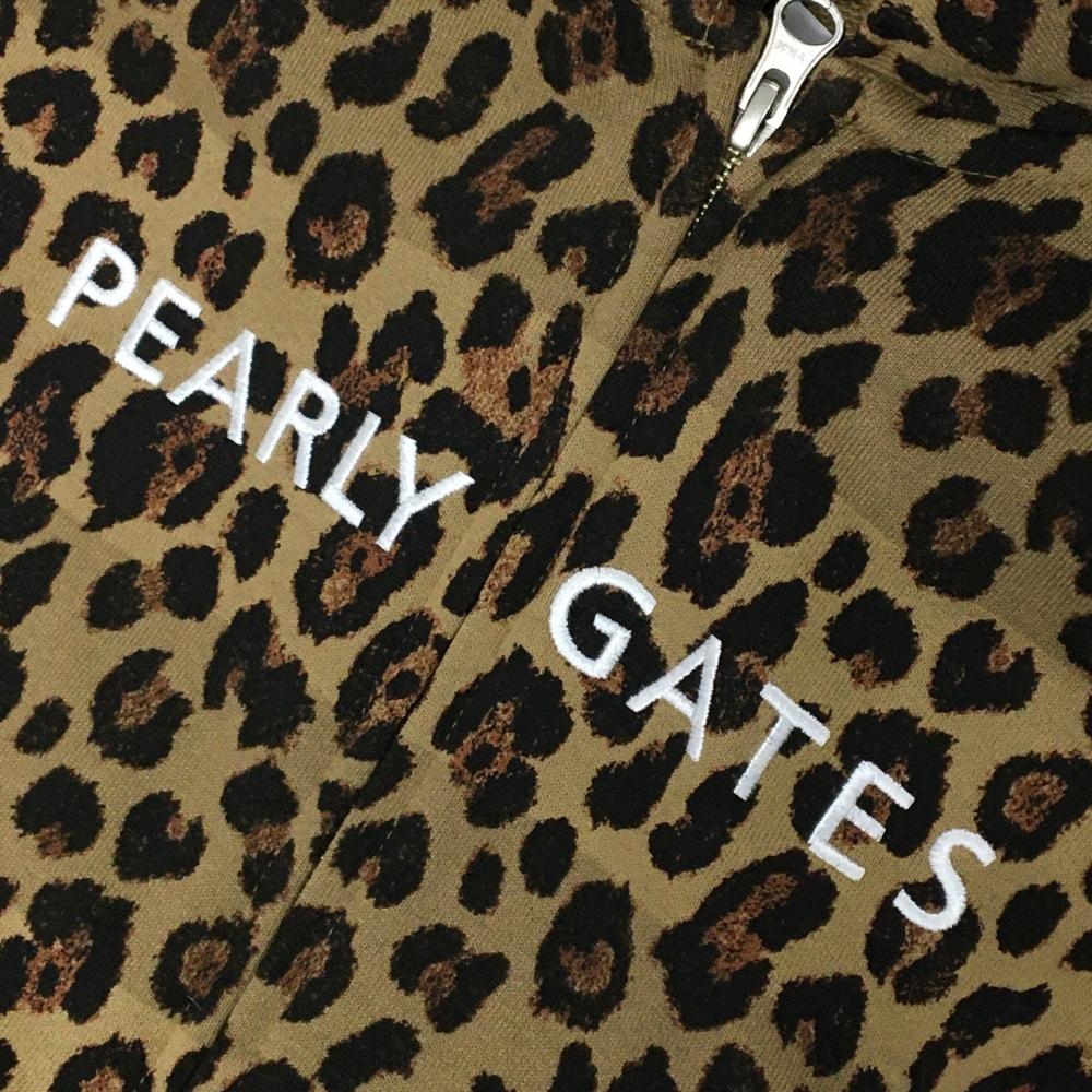 【新品】パーリーゲイツ ジップパーカー ライトブラウン×黒 レオパード ロゴ刺しゅう レディース 0(S) ゴルフウェア PEARLY GATES