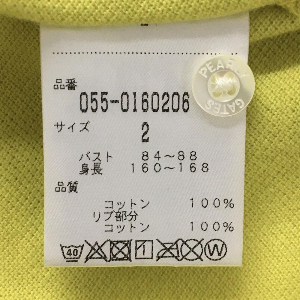 【美品】パーリーゲイツ 半袖ポロシャツ イエロー ロゴネイビー レディース 2(L) ゴルフウェア PEARLY GATES