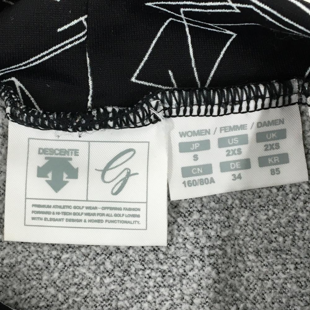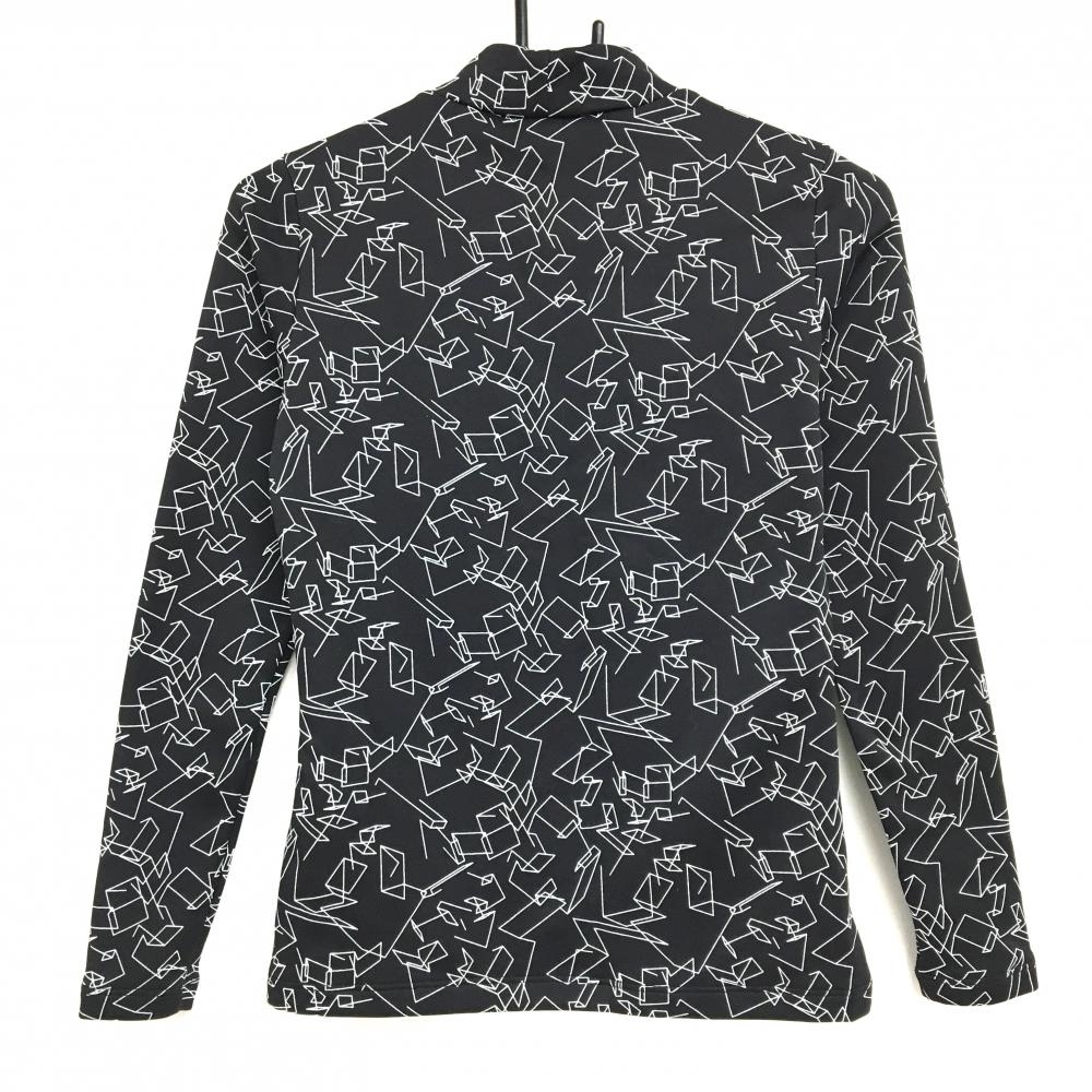 【超美品】デサントゴルフ 長袖ハイネックシャツ 黒×白 総柄 肩ロゴ 裏微起毛 中田英寿 レディース S ゴルフウェア DESCENTE