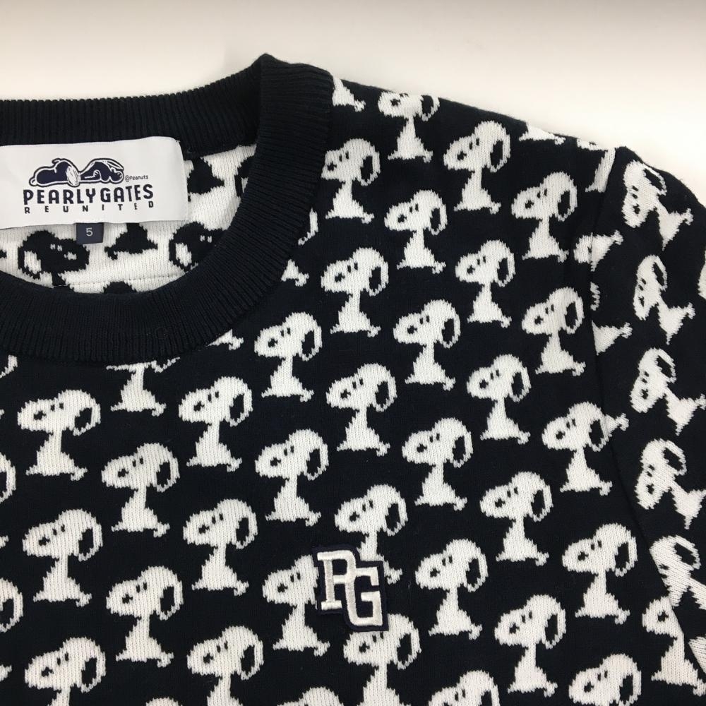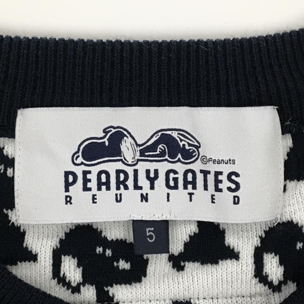 【超美品】パーリーゲイツ×PEANUTS セーター ネイビー×白 スヌーピー総柄 ニット メンズ 5(L) ゴルフウェア PEARLY GATES