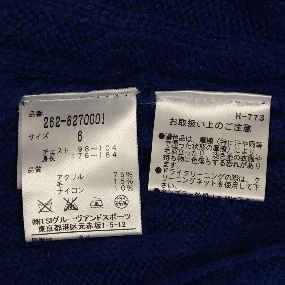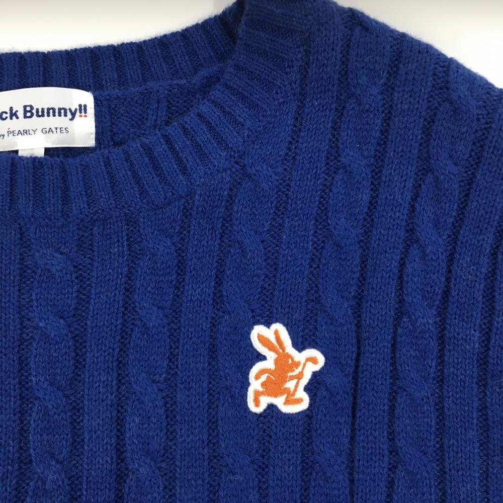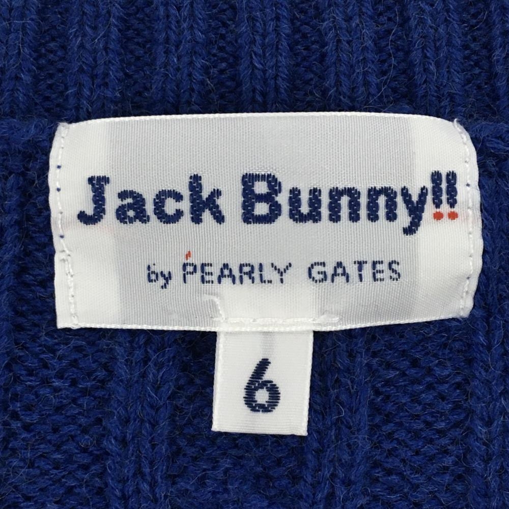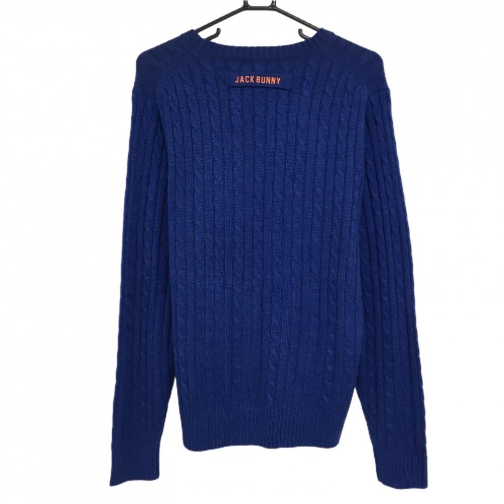 【超美品】ジャックバニー セーター ブルー ケーブル編み ニット ウール混 メンズ 6(XL) ゴルフウェア Jack Bunny