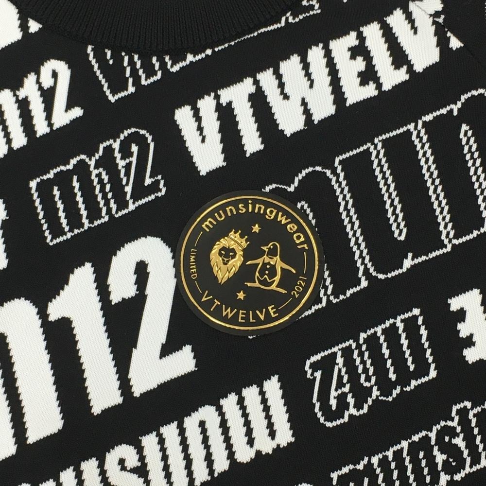 【超美品】マンシングウェア×V12 セーター 黒×白 斜めロゴ総柄 防風裏地付 メンズ S ゴルフウェア Munsingwear