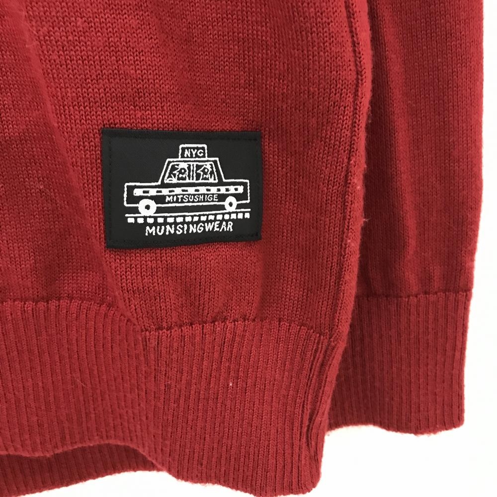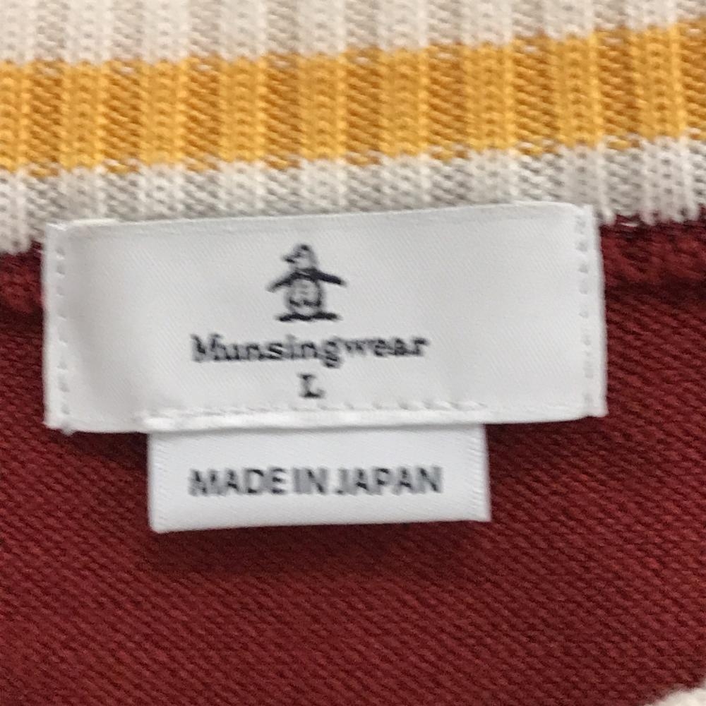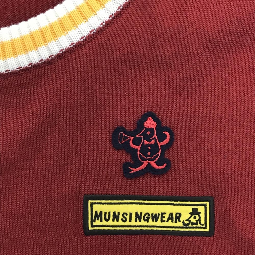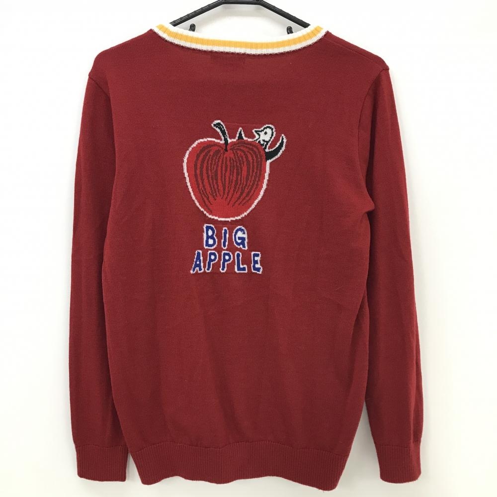 【美品】マンシングウェア セーター レッド×イエロー 背面アップル ウール混 ニット レディース L ゴルフウェア Munsingwear