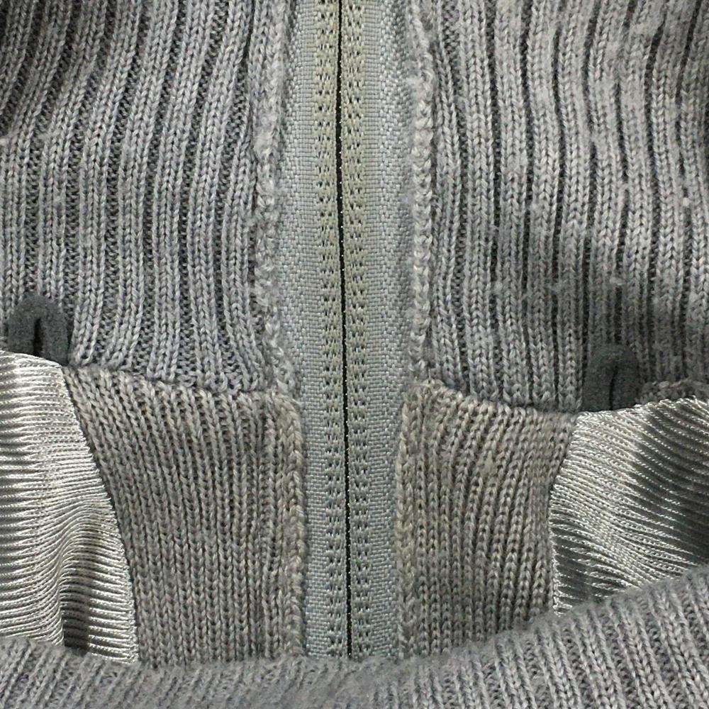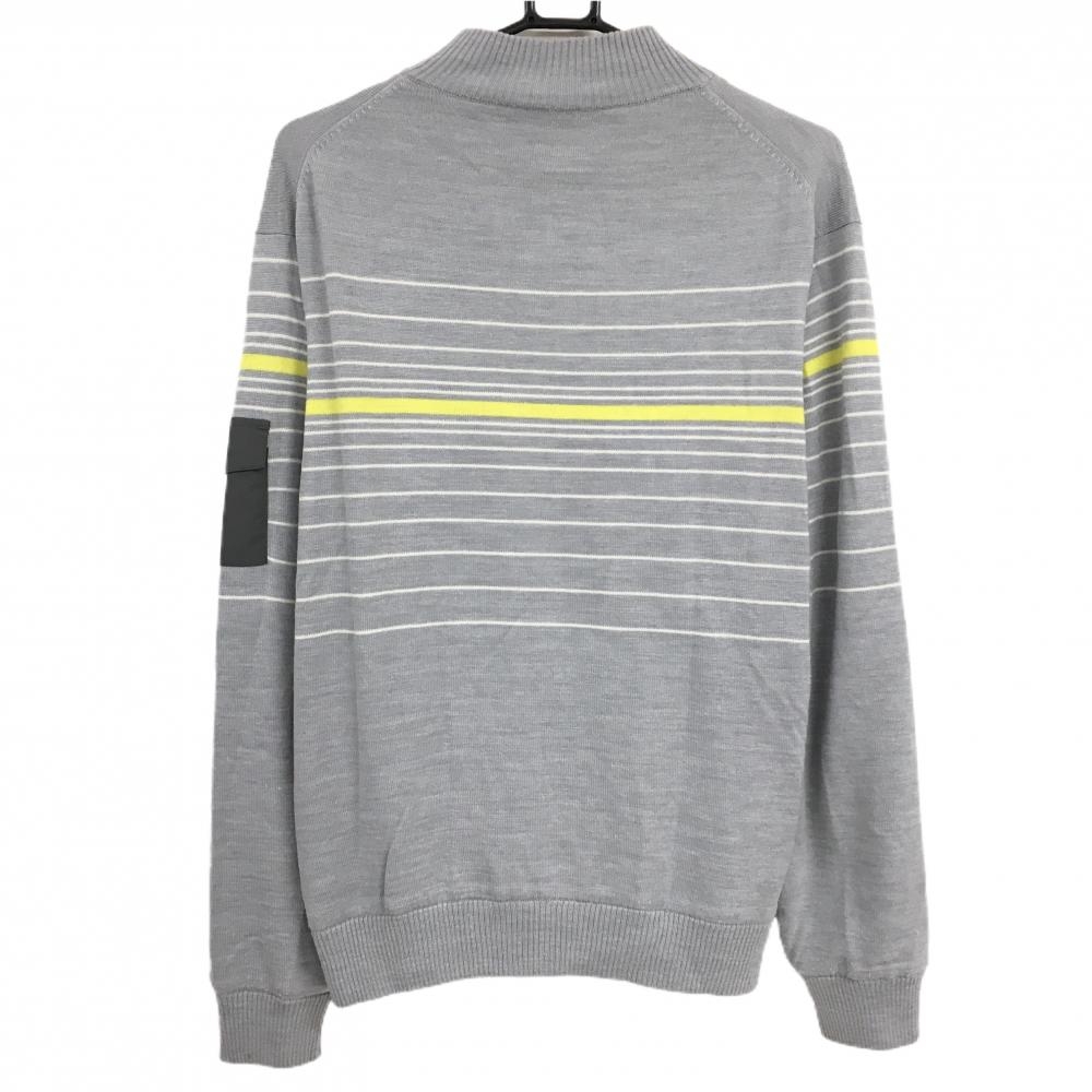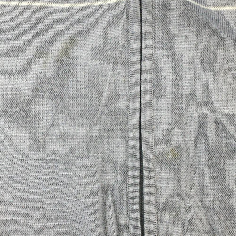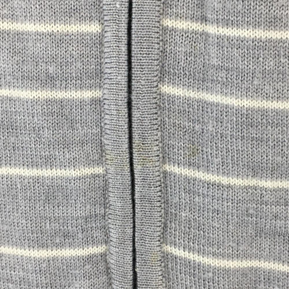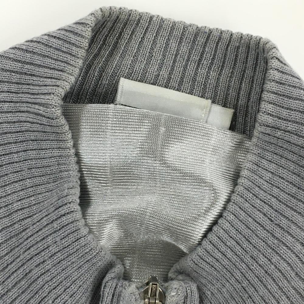 アディダス ニットブルゾン グレー×白 一部ボーダー 袖ポケット 蓄熱裏地 メンズ O/XG ゴルフウェア adidas