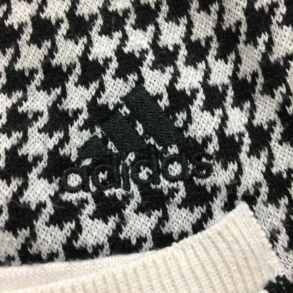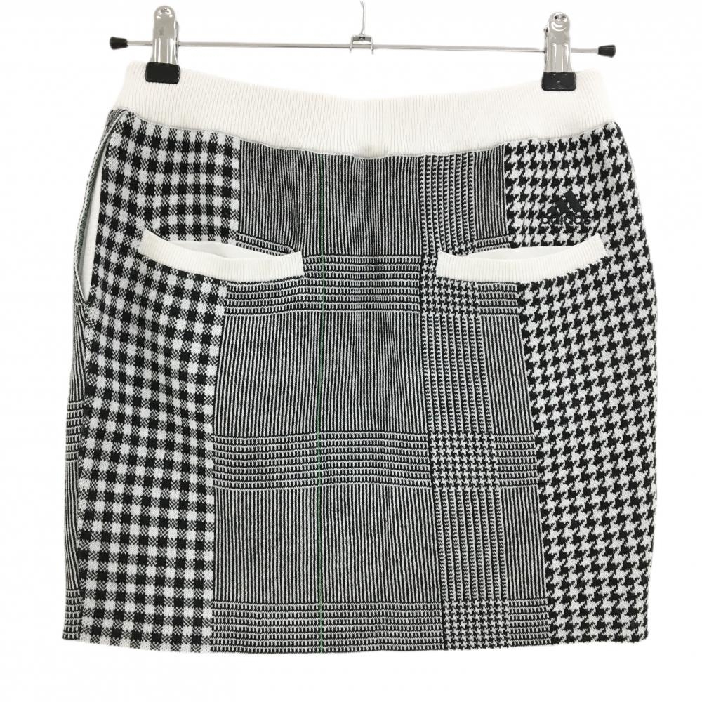 【美品】アディダス ニットスカート 白×黒 千鳥格子 グレンチェック ウエストゴム レディース S ゴルフウェア adidas