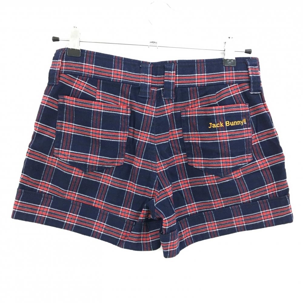 【美品】ジャックバニー ショートパンツ ネイビー×レッド チェック コットン混 ジュニア・キッズ 150 ゴルフウェア Jack Bunny