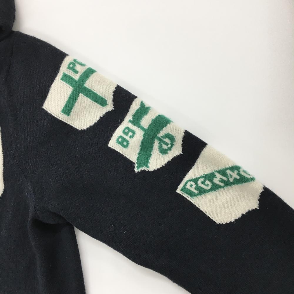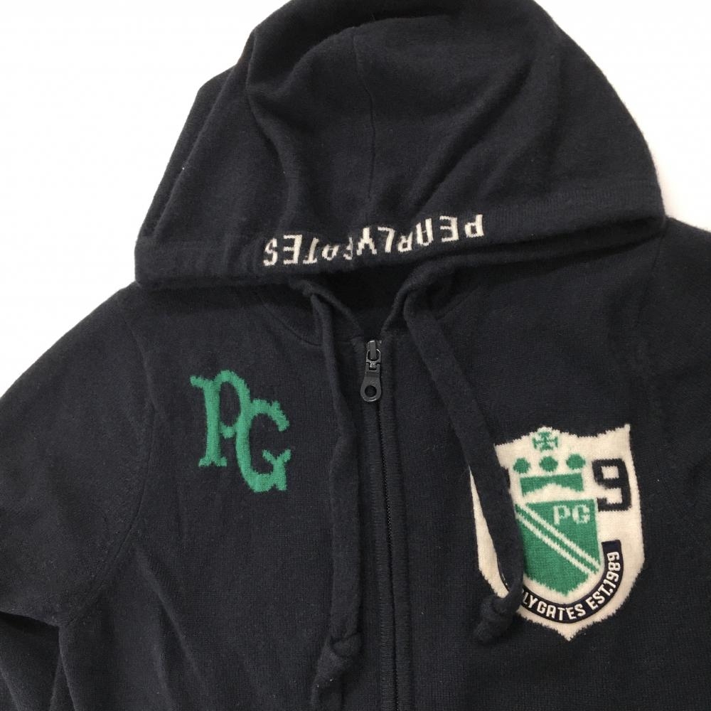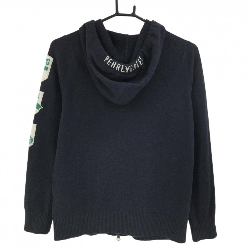 【美品】パーリーゲイツ ニットジップパーカー ネイビー ロゴグリーン カシミヤ100% レディース 0(S) ゴルフウェア PEARLY GATES