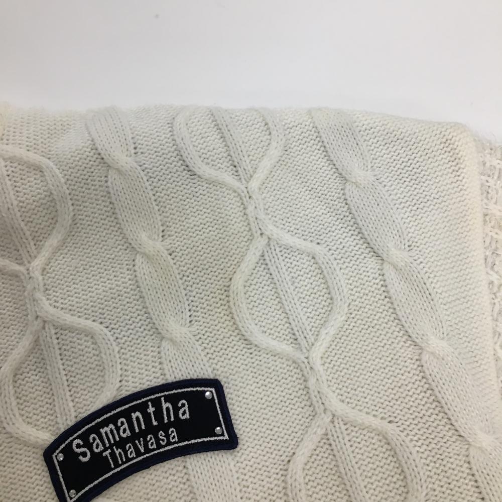 サマンサタバサ№7 ニットジャケット 白 袖異素材 ケーブル編み レディース 38(M) ゴルフウェア Samantha Thavasa