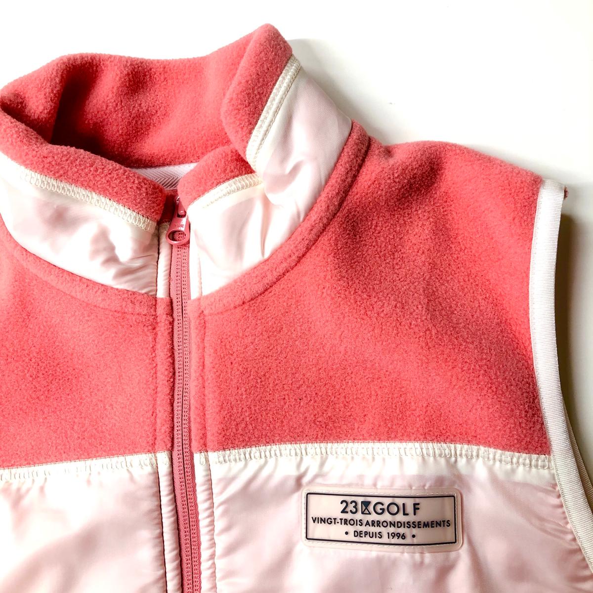 【超美品】23区ゴルフ フリースベスト サーモンピンク系×白 切替素材 POLARTEC レディース II(L) ゴルフウェア 23区