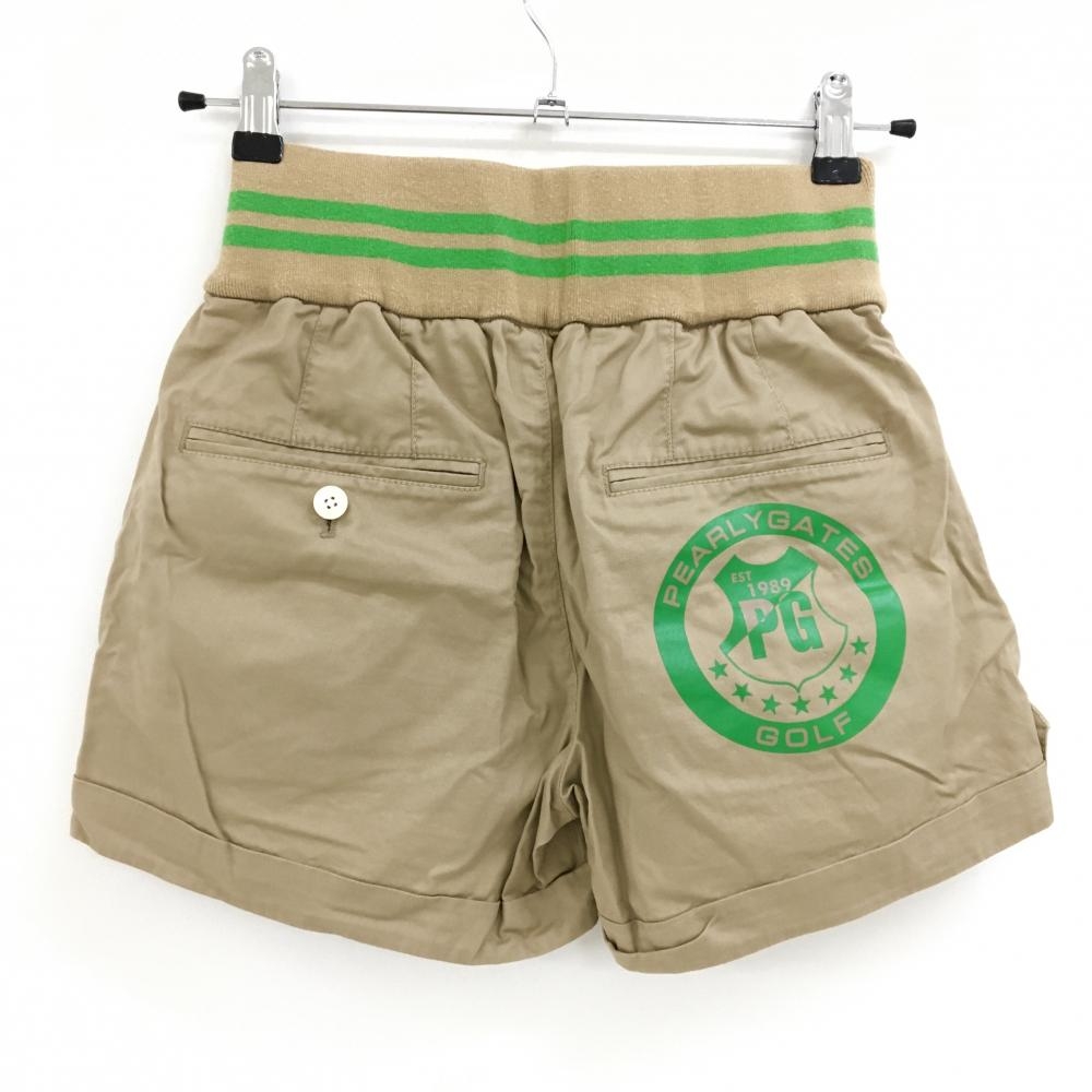 パーリーゲイツ ショートパンツ ベージュ×グリーン ウエストゴム ロゴグリーン レディース 0(S) ゴルフウェア PEARLY GATES