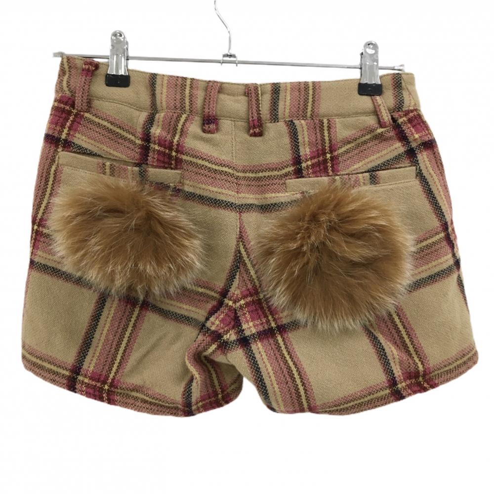 【超美品】マークアンドロナ ショートパンツ ベージュ×ピンク チェック ウール混 裏微起毛 レディース 38(M) ゴルフウェア MARK&LONA