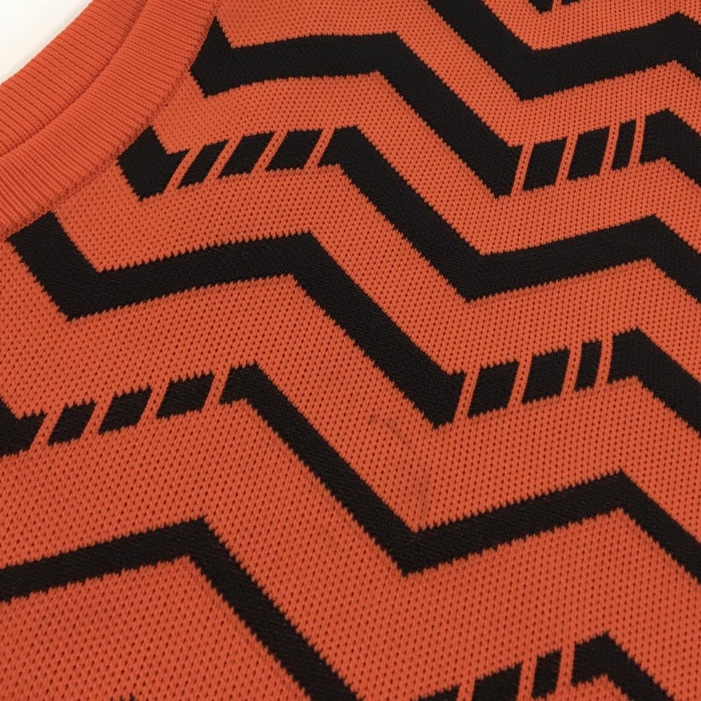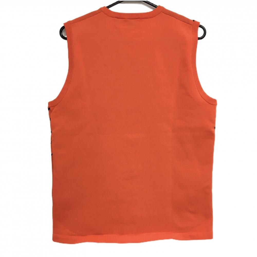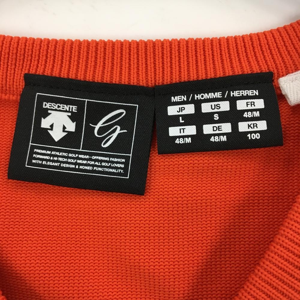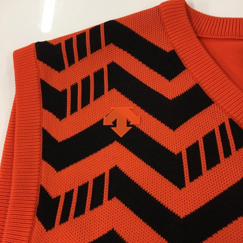 【超美品】デサントゴルフ ニットベスト オレンジ×黒 前面ギザギザ柄 Vネック 中田英寿 メンズ L ゴルフウェア DESCENTE