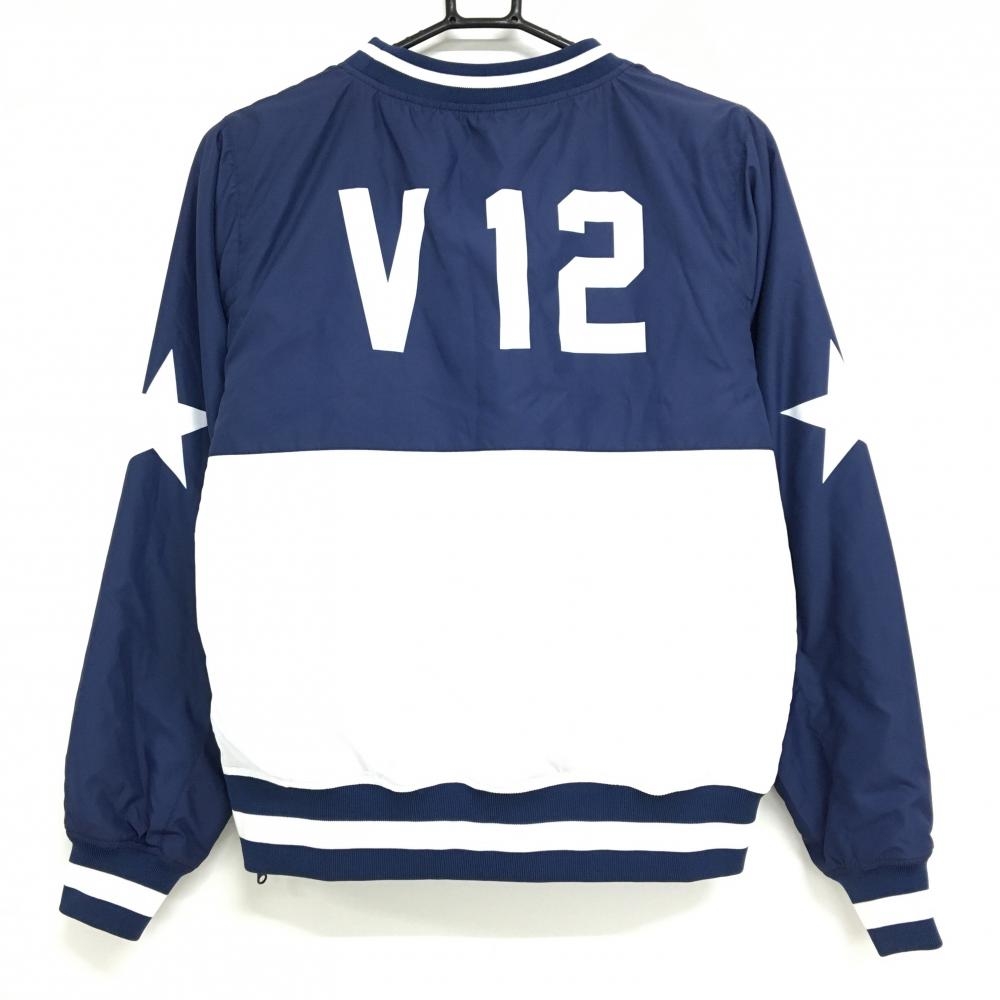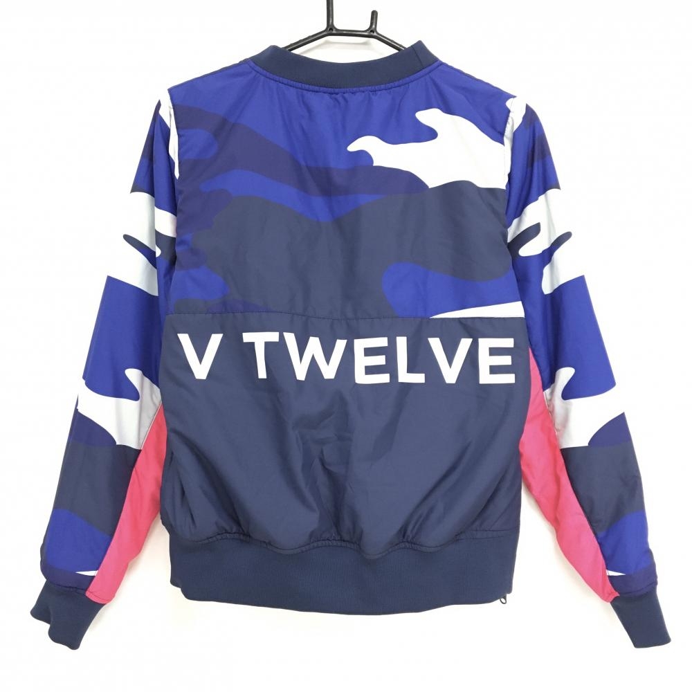 【超美品】V12 中綿リバーシブルスニード ブルー×ネイビー 上部迷彩調 カモフラ ブルゾン レディース 1(M) ゴルフウェア V12