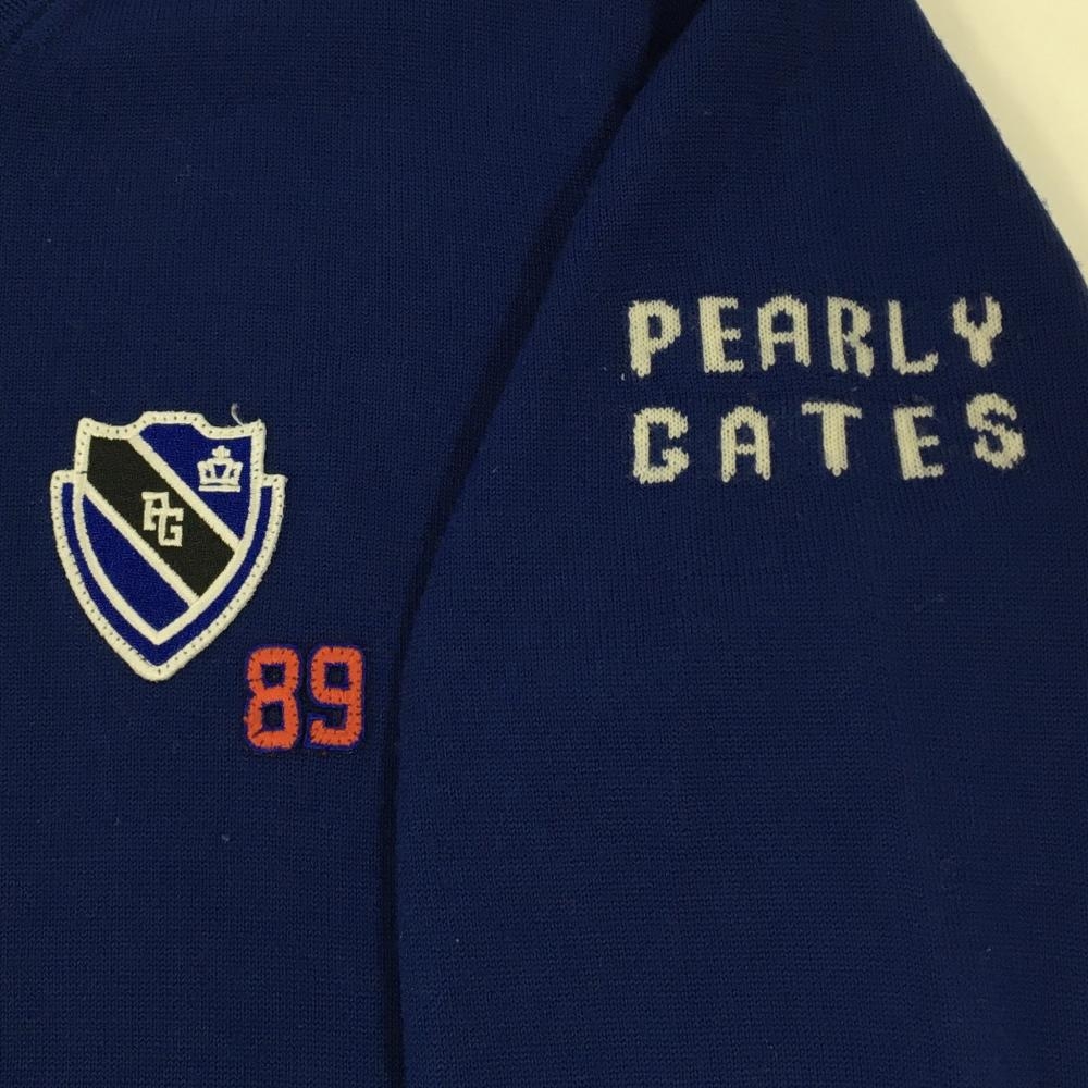 【美品】パーリーゲイツ セーター ブルー 刺しゅうワッペン ニット レディース 0(S) ゴルフウェア PEARLY GATES