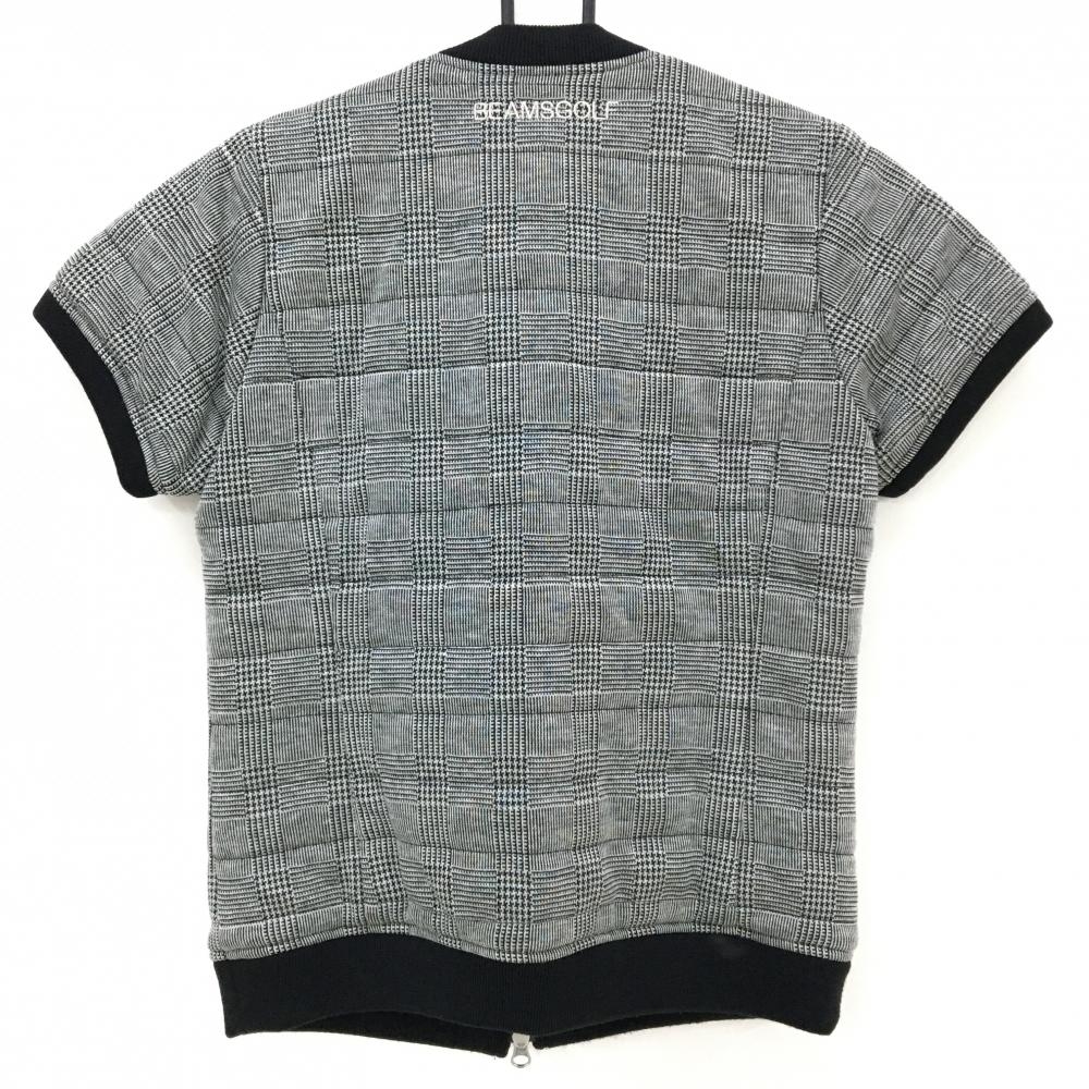 【超美品】ビームスゴルフ 半袖中綿ジャケット 黒×ライトグレー グレンチェック 蓄熱裏地 レディース S ゴルフウェア BEAMS GOLF