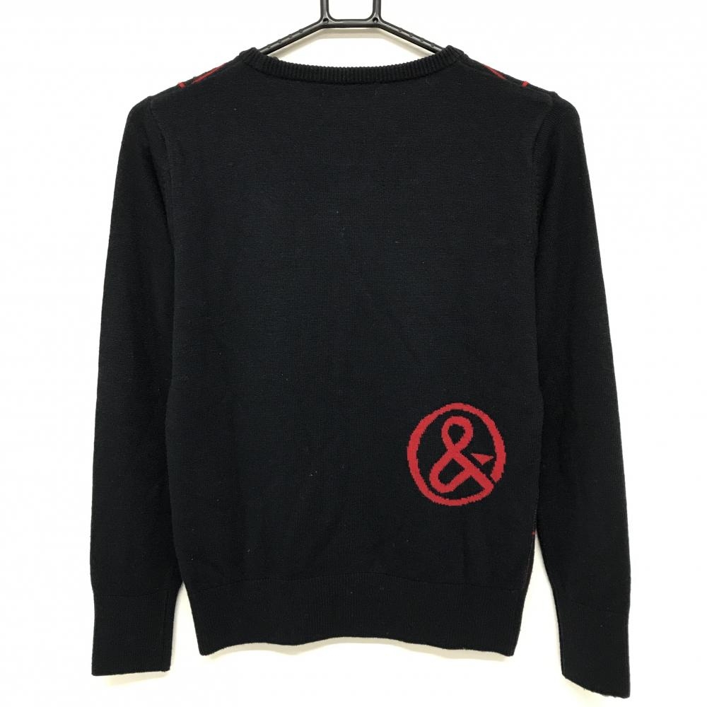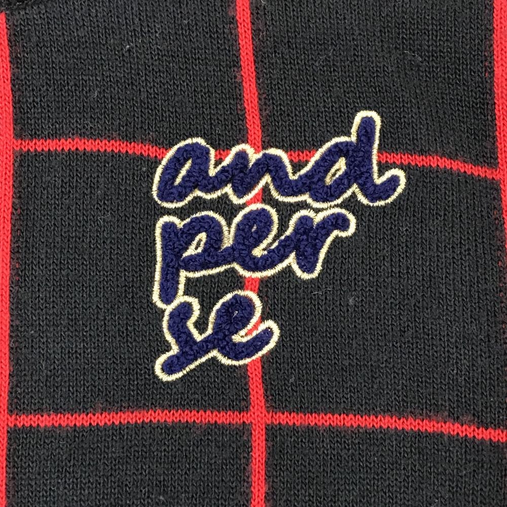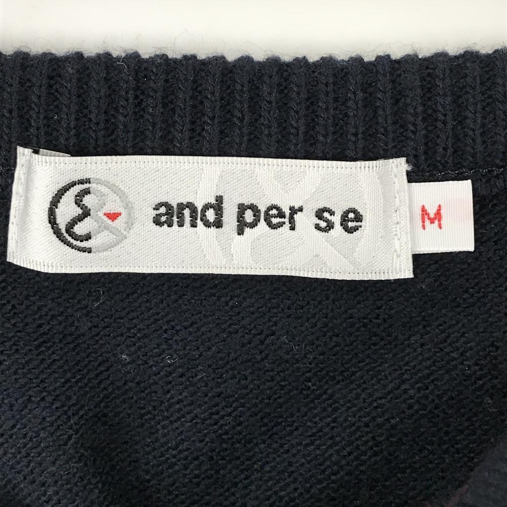 アンパスィ セーター ネイビー×レッド 格子柄 パイルロゴ ニット ウール混 レディース M ゴルフウェア and per se