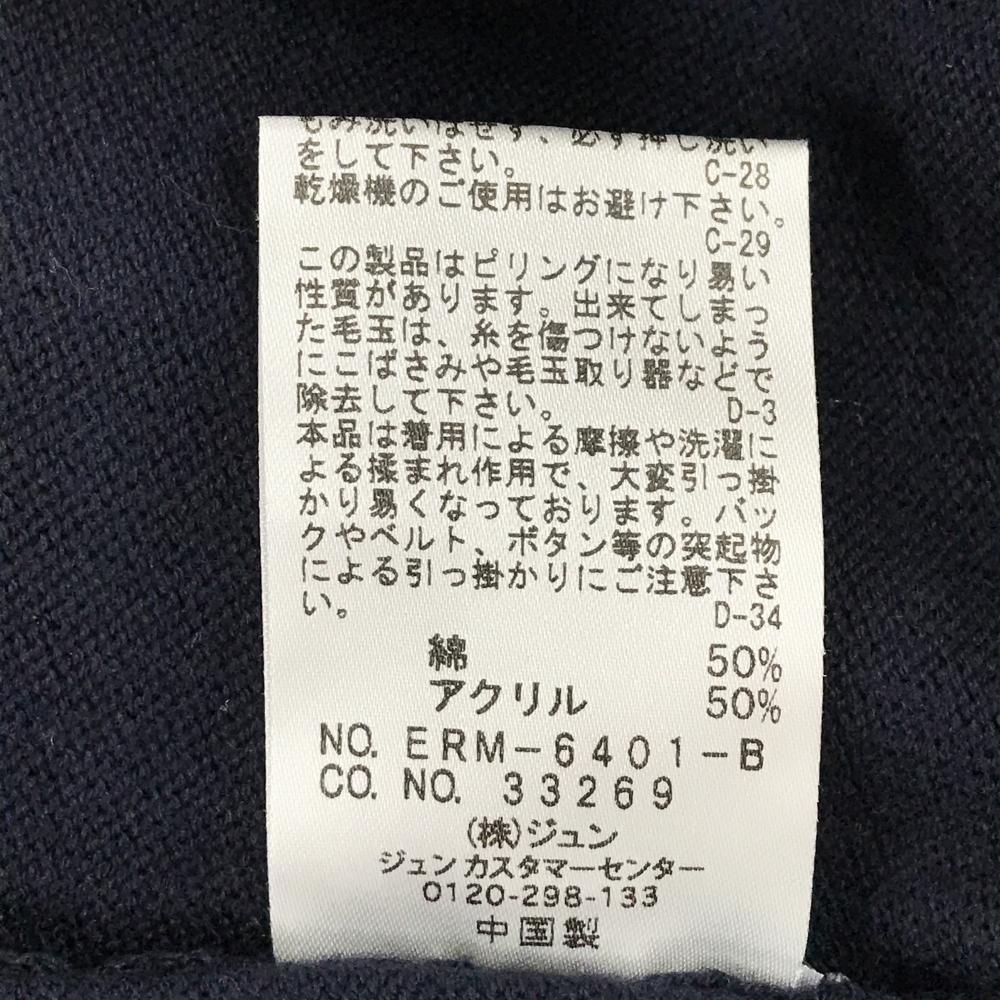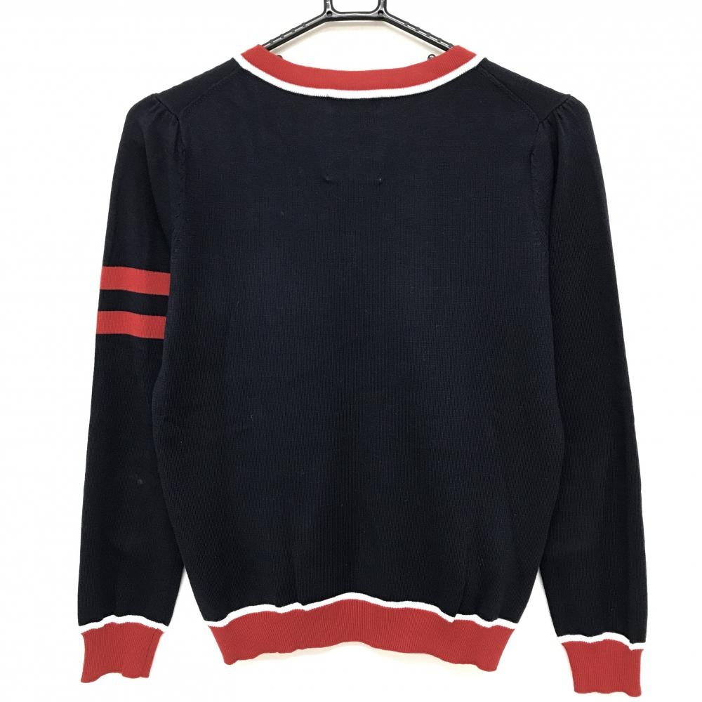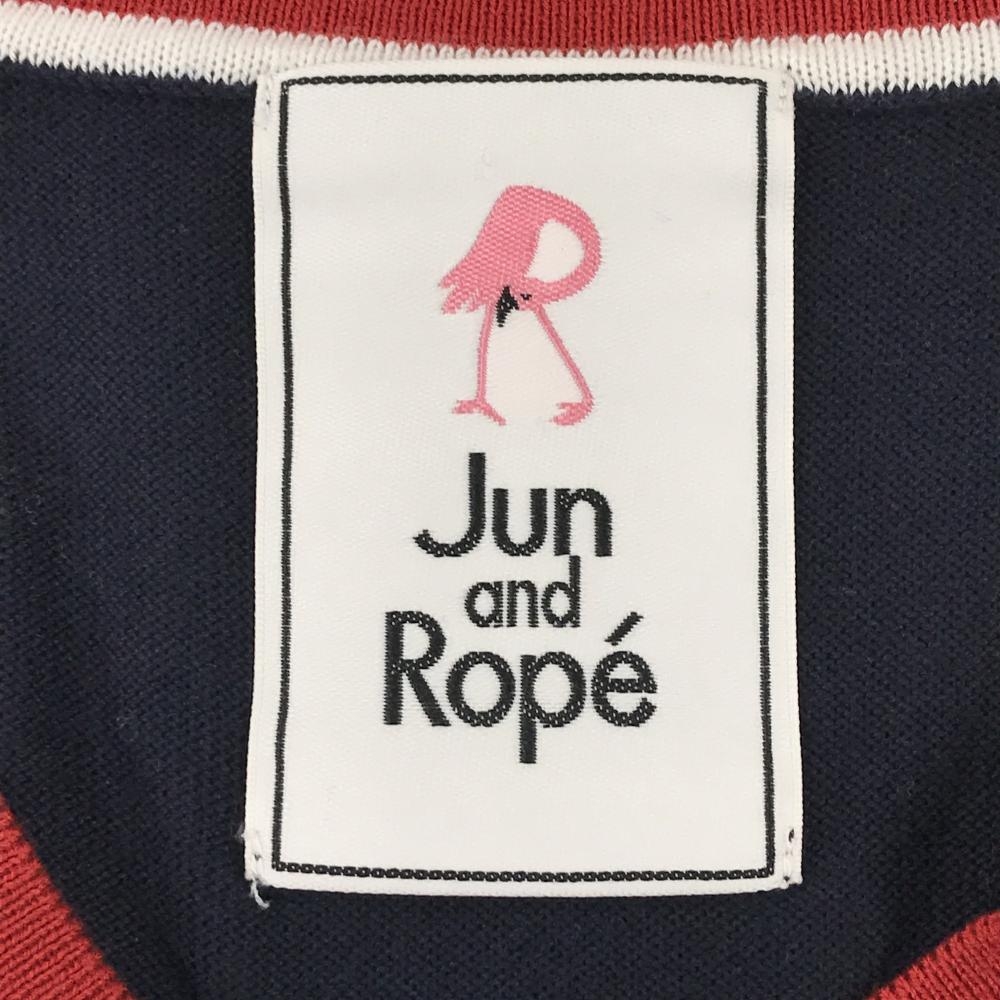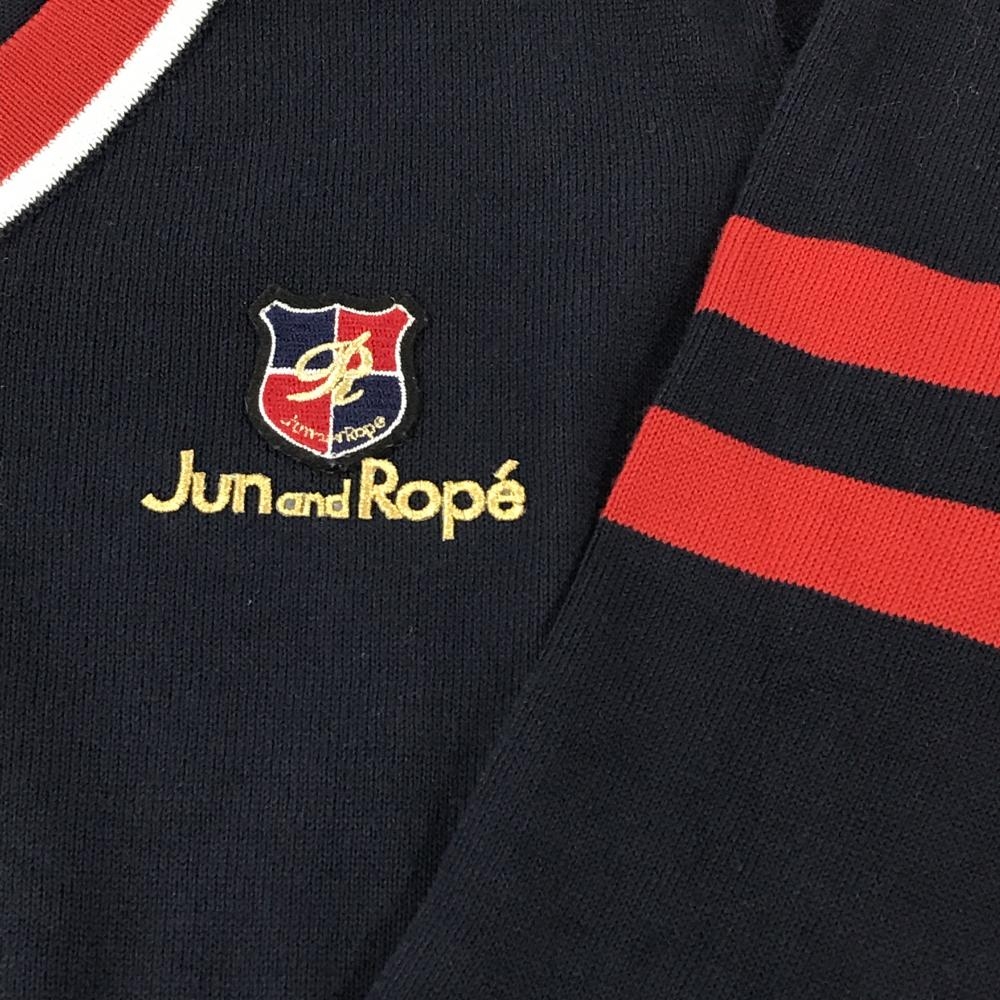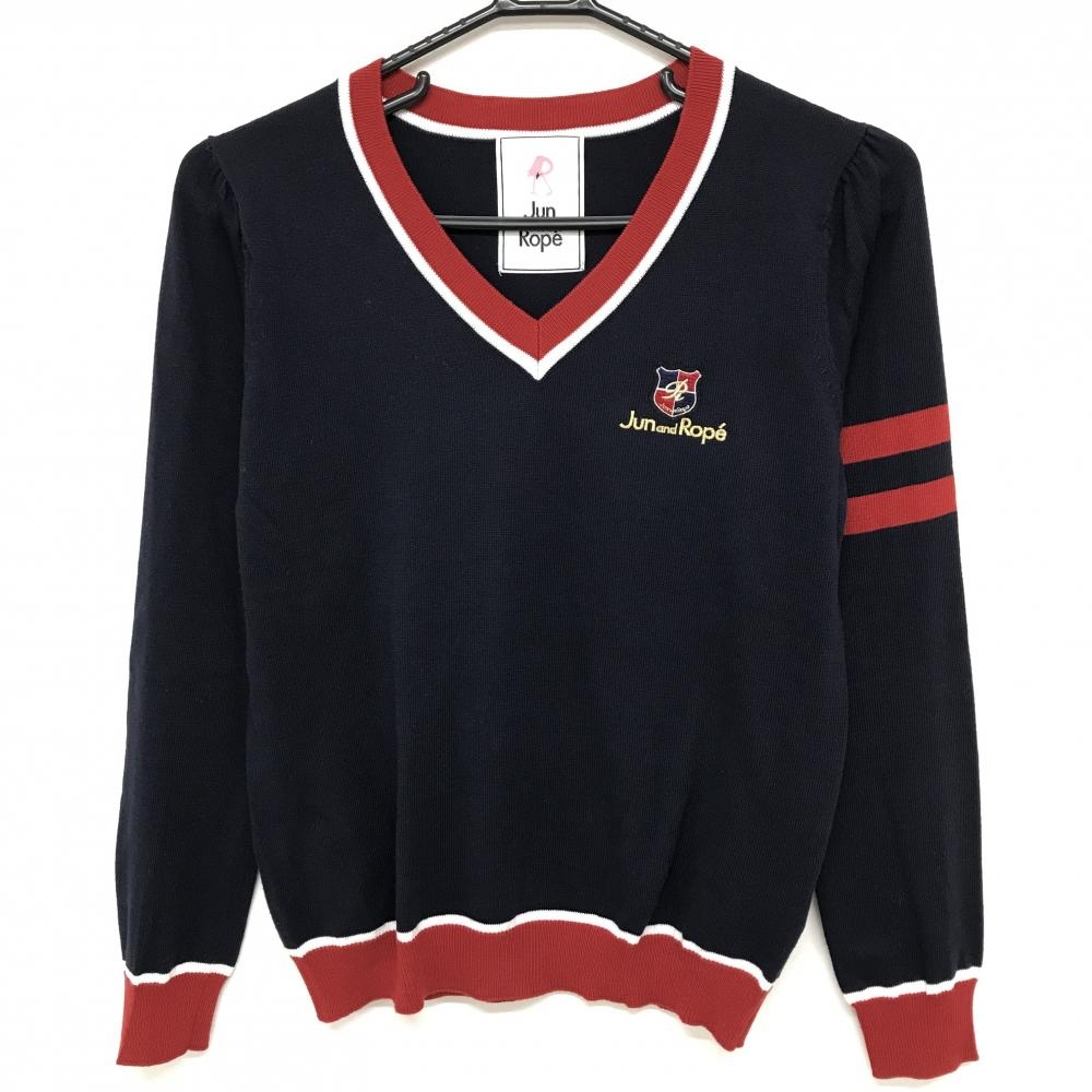 【超美品】ジュンアンドロペ セーター ネイビー×レッド 袖2ライン Vネック ロゴ刺しゅう ニット レディース M ゴルフウェア JUN&ROPE