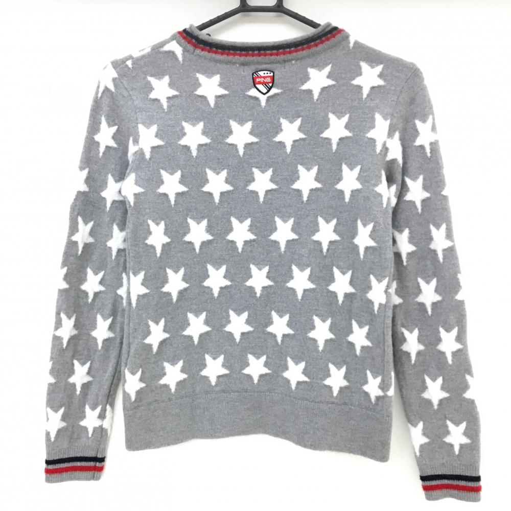 【美品】ピン セーター グレー×白 星柄 韓国モデル ニット レディース 95 ゴルフウェア PING
