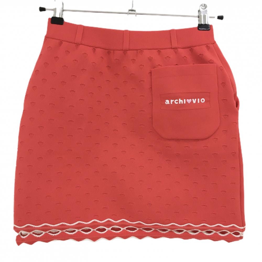 【超美品】アルチビオ ニットスカート レッドオレンジ 裾透かし編み風 レディース 36(S) ゴルフウェア archivio